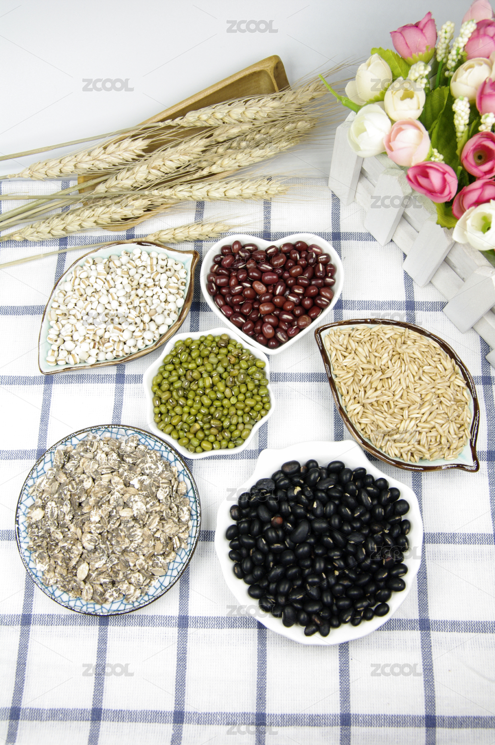杂粮组合,八宝粥食材,早餐食材,红豆,绿豆,黑豆,黑燕麦片,薏仁,燕麦粒,大枣
