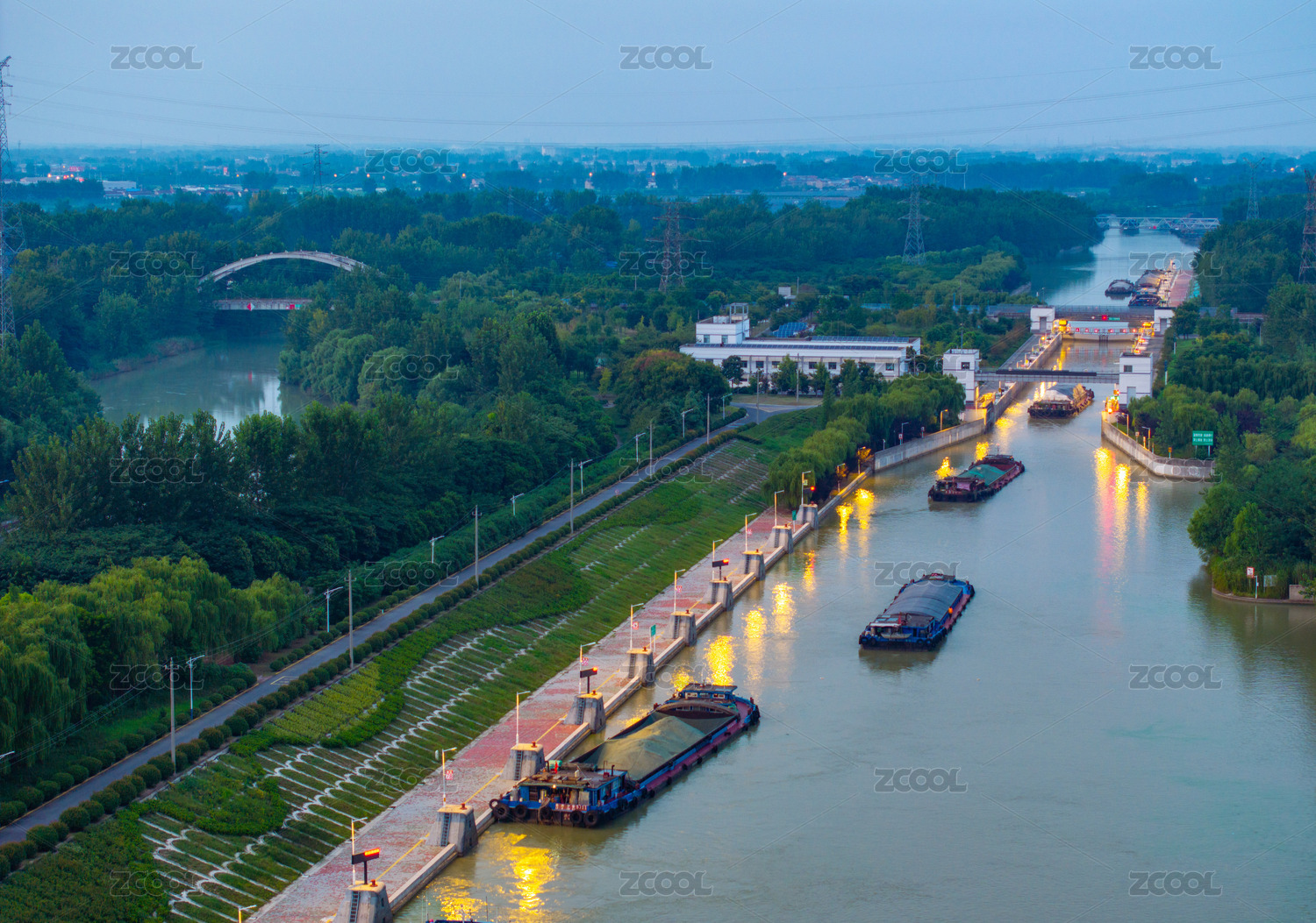 京杭大运河中国江苏省淮安市五河口段的彩霞风光
