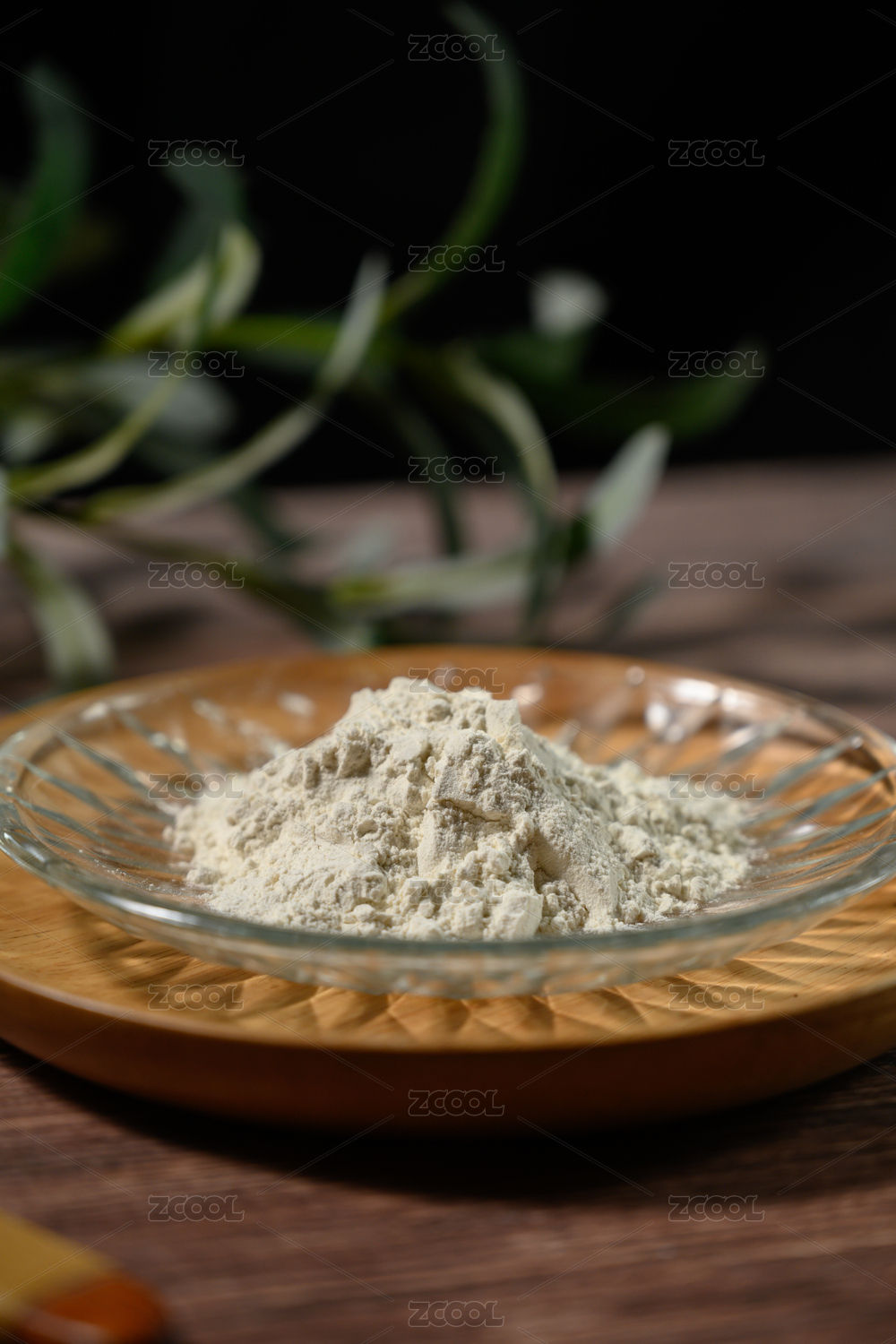桌面上的盘子里的干爽的红薯淀粉