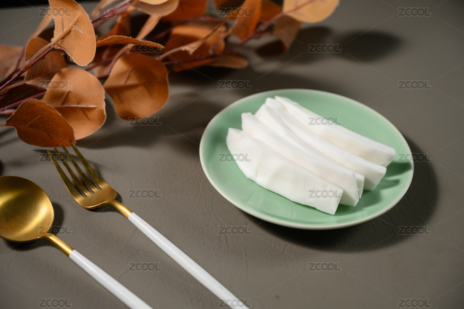 桌面上的盘子里的美味可口的新鲜椰子肉