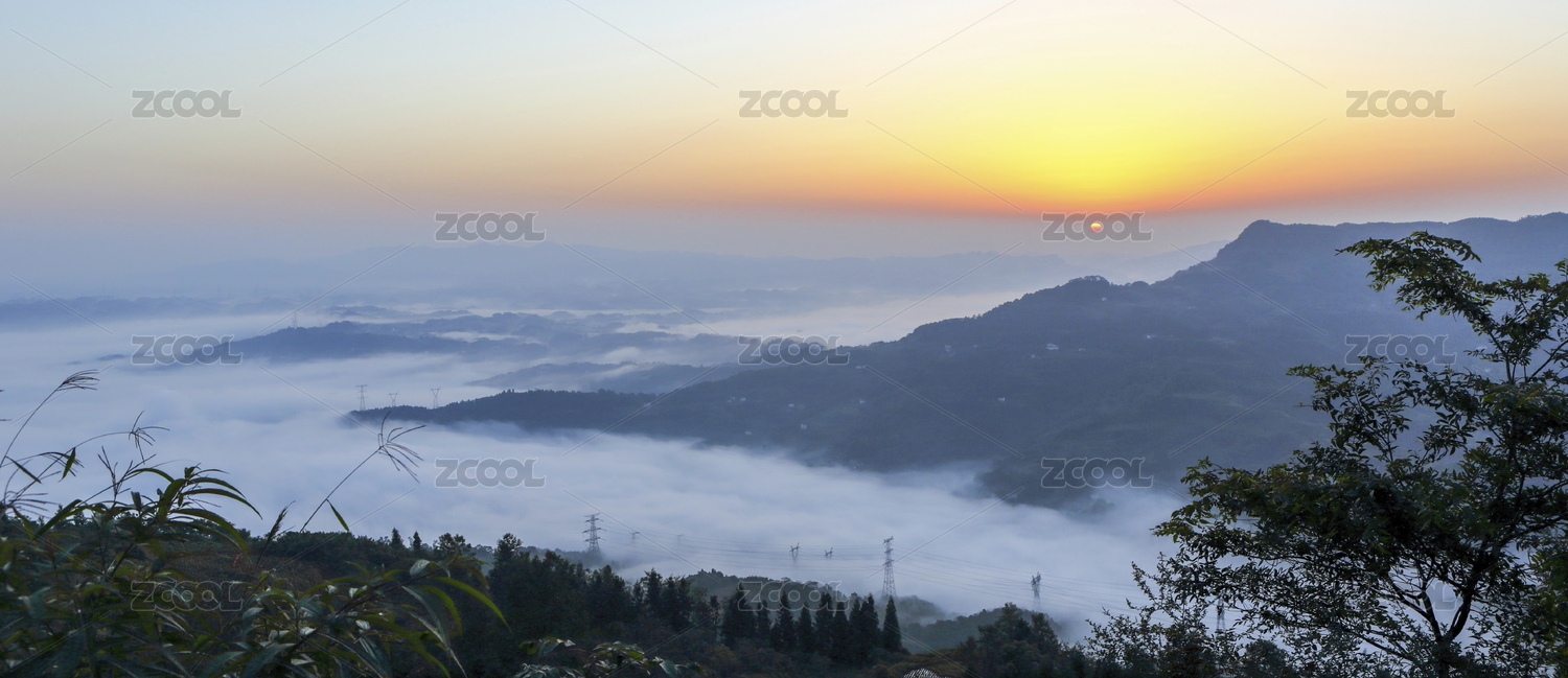 中国四川宜宾横江古镇清晨云雾缭绕的高山