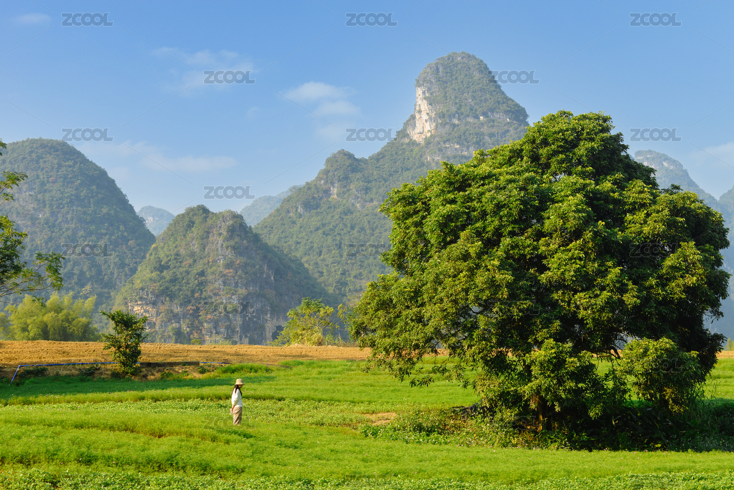 中国广西桂林漓江阳朔喀斯特地貌稻田田园风光