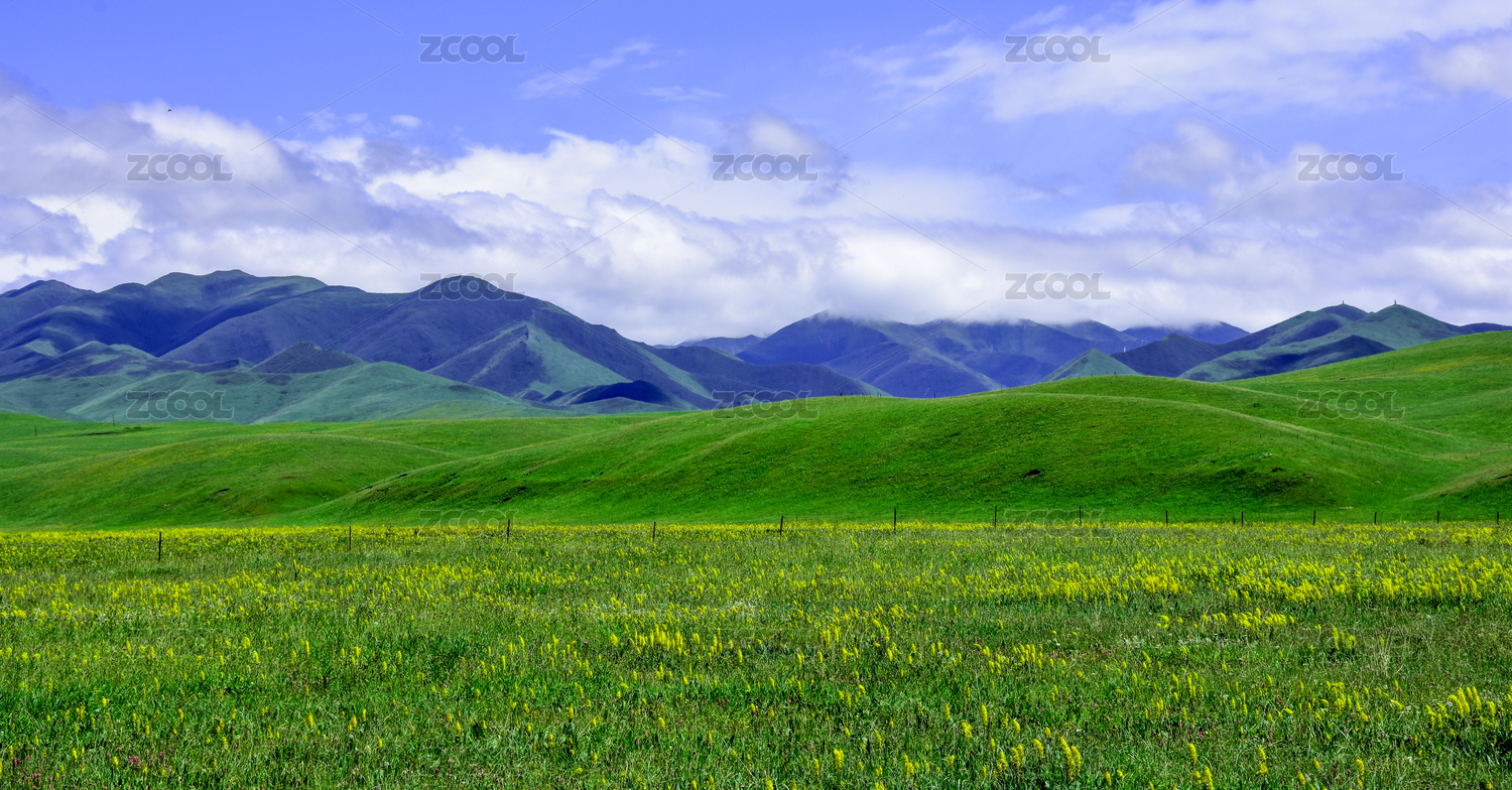 素材,背景,蓝天,白云,人像背景,无人,户外,草原,五彩经幡,山脉