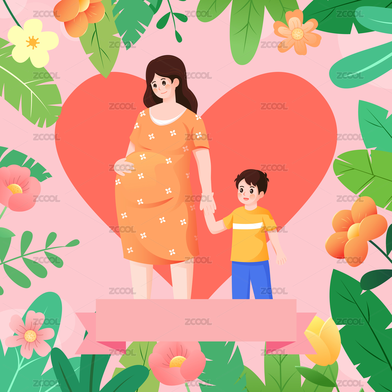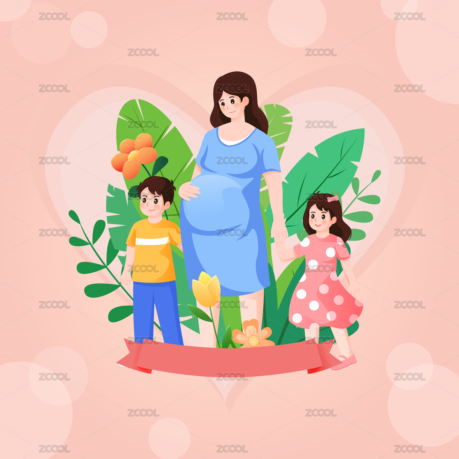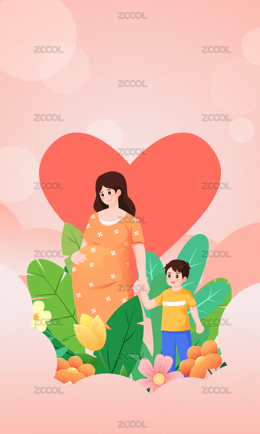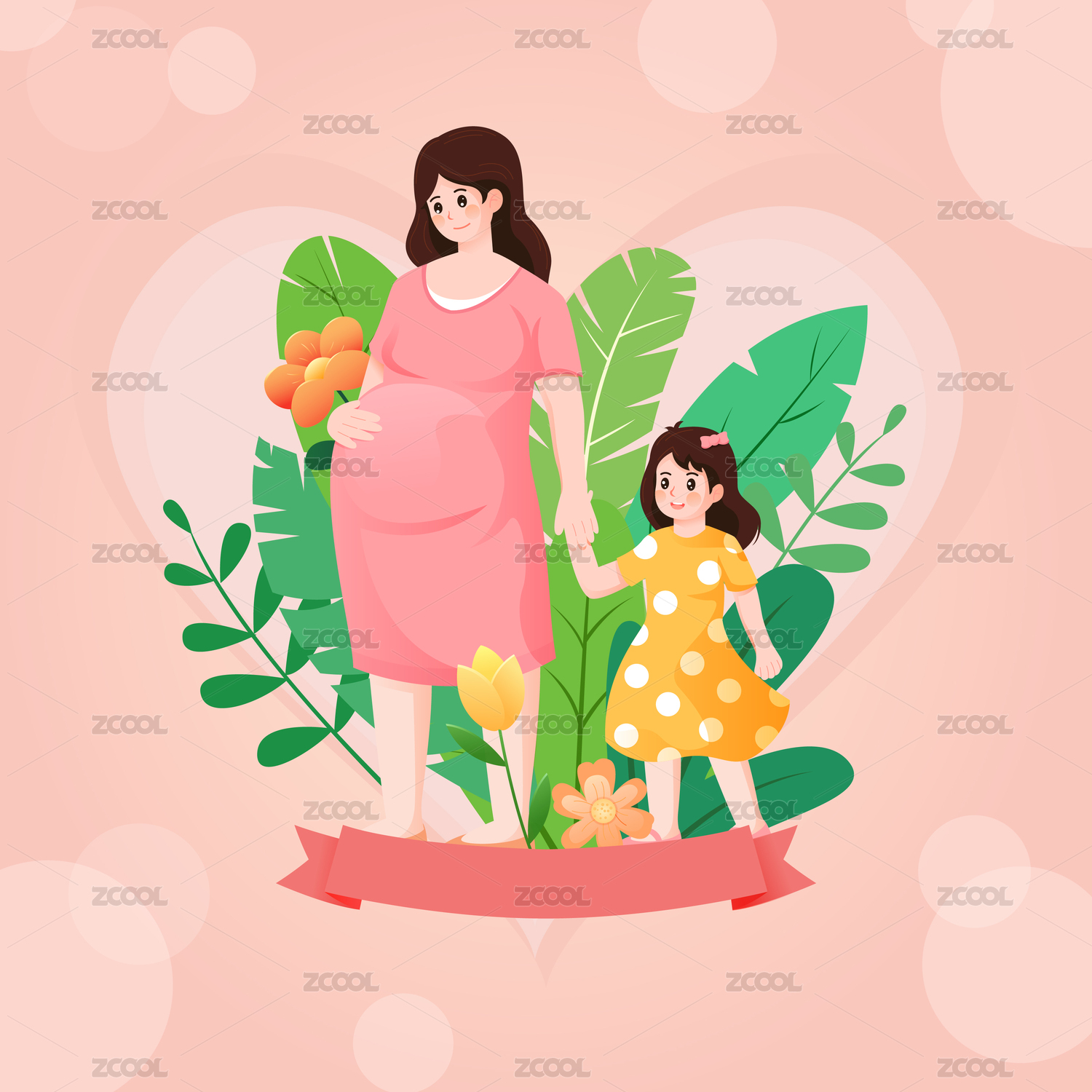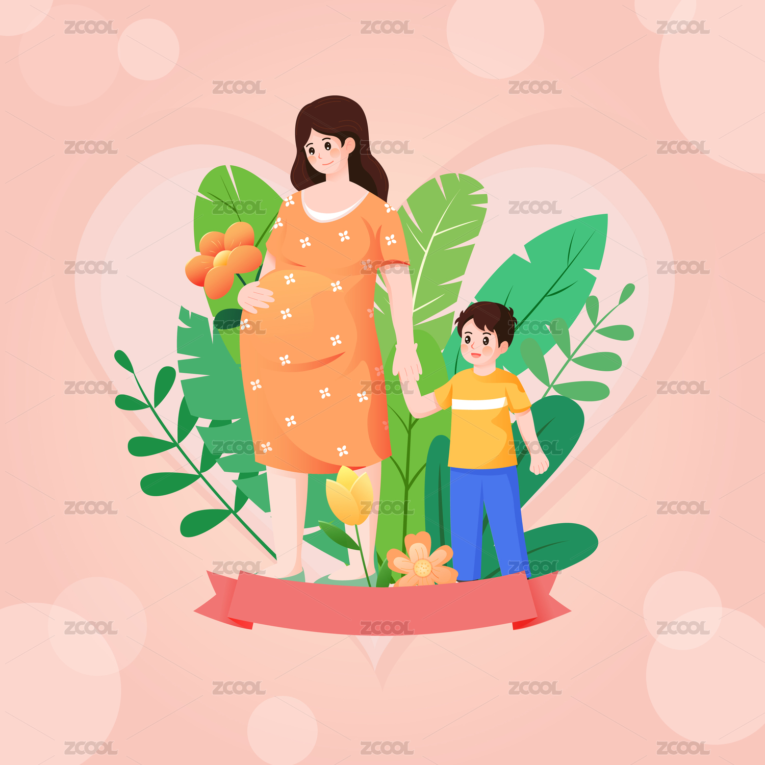 母亲节快乐孕妇妈妈儿童人物矢量插画海报