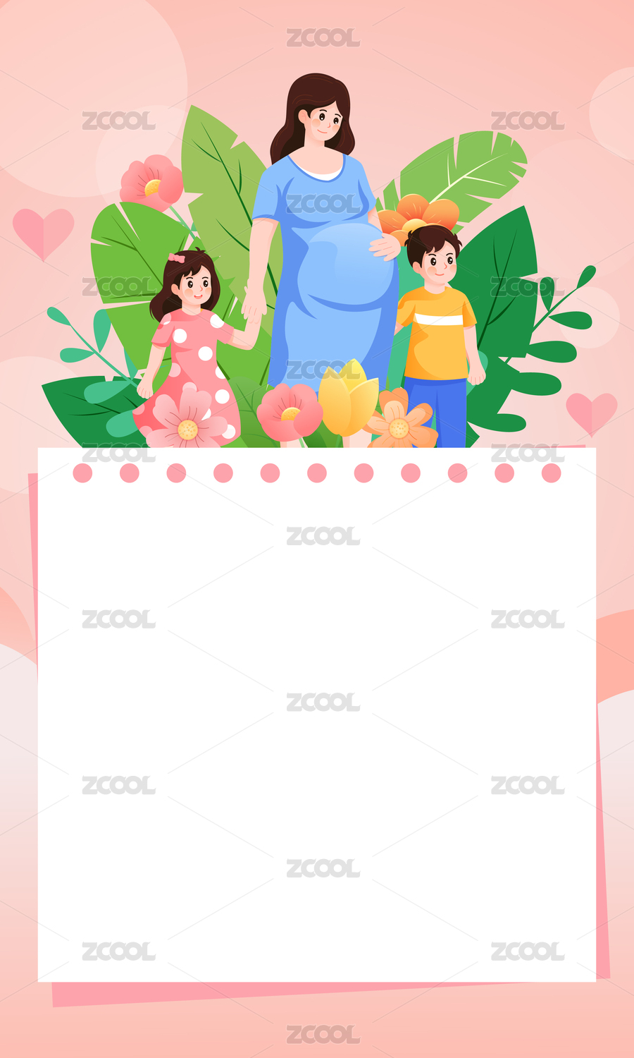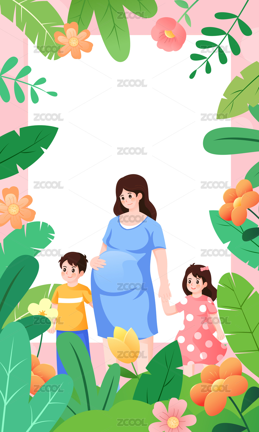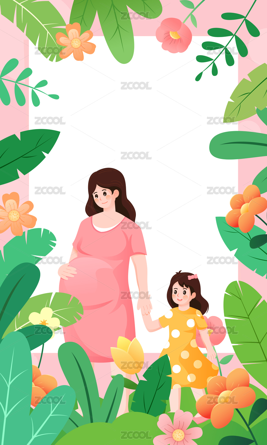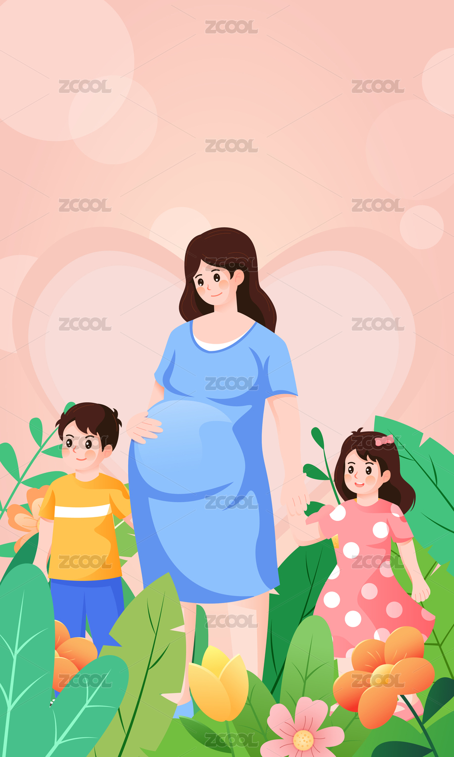 母亲节快乐孕妇妈妈儿童人物矢量插画海报
