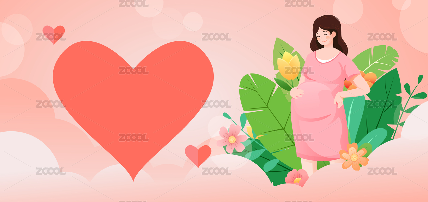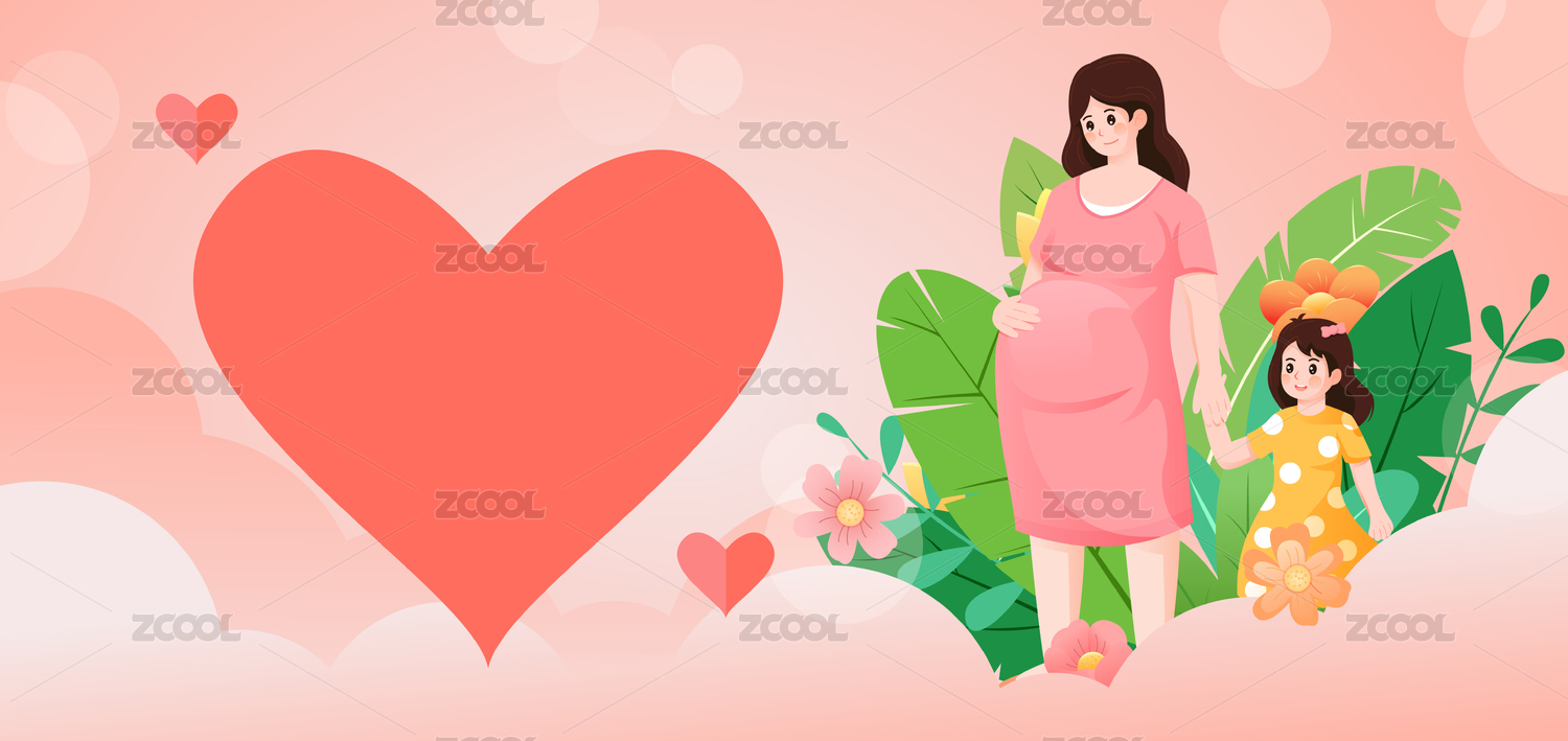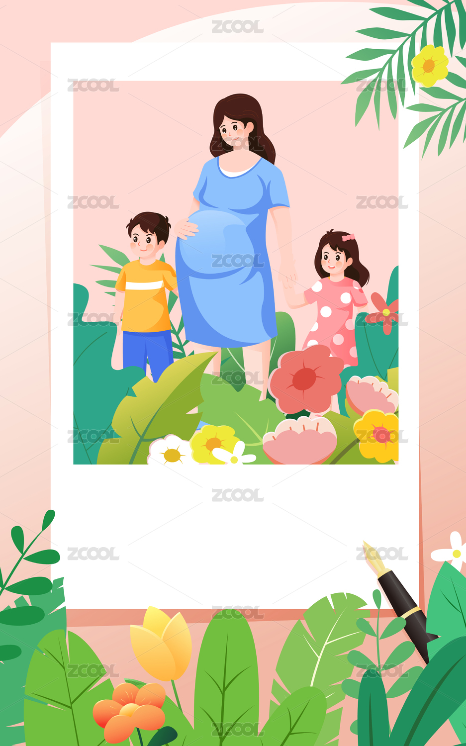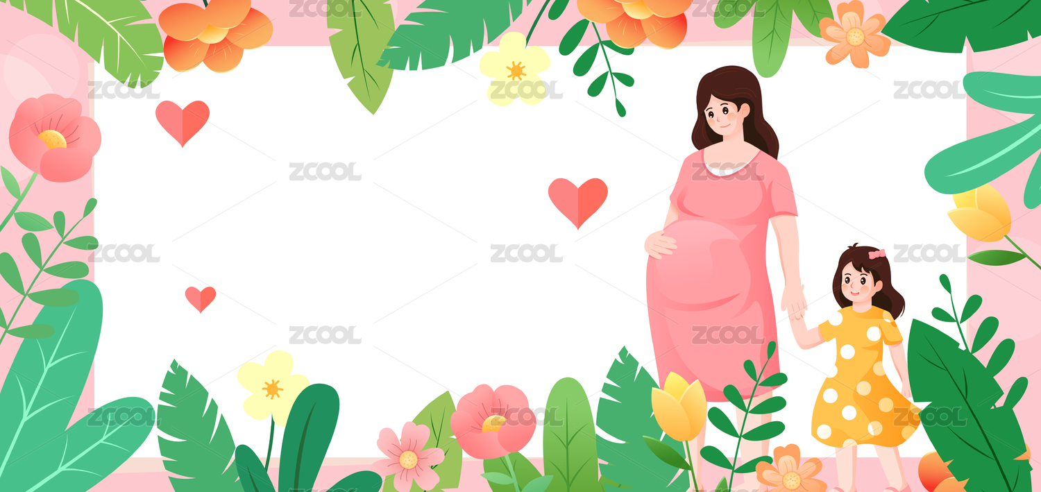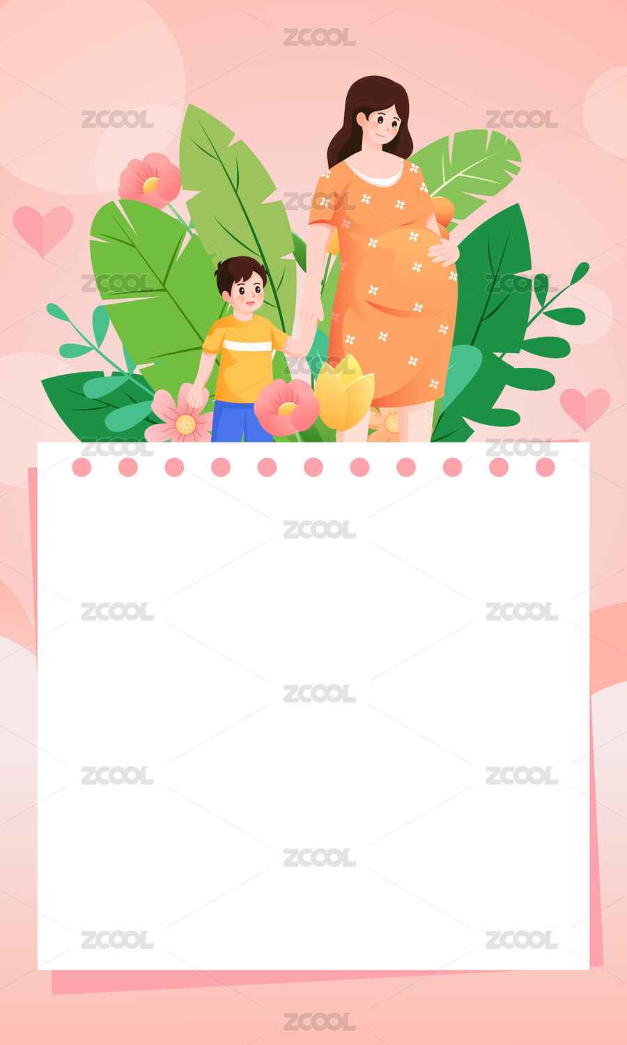 母亲节快乐孕妇妈妈儿童人物矢量插画海报