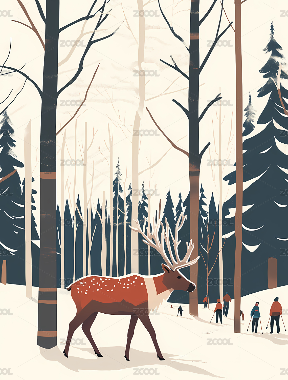 麋鹿,麋鹿插画,好看的麋鹿插画,简约画,圣诞节插画