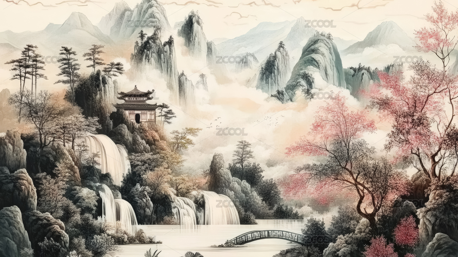 DXCZ202402,中国风,水墨,丹青,山水画,古典,复古,国画,工笔画,风景