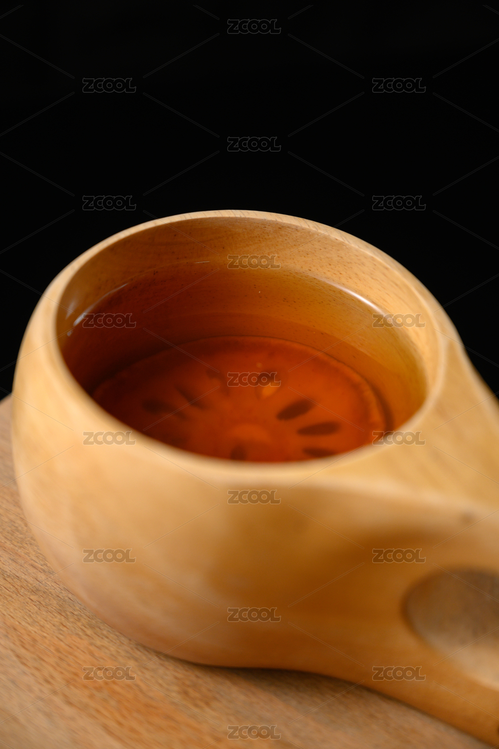 桌面上的杯子里的甘甜可口的木橘茶