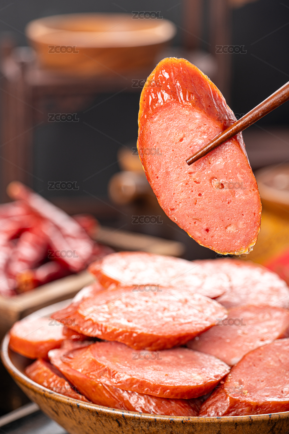 筷子夹起来的香肠