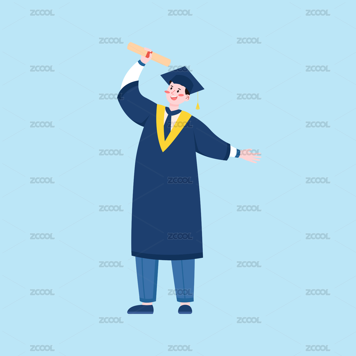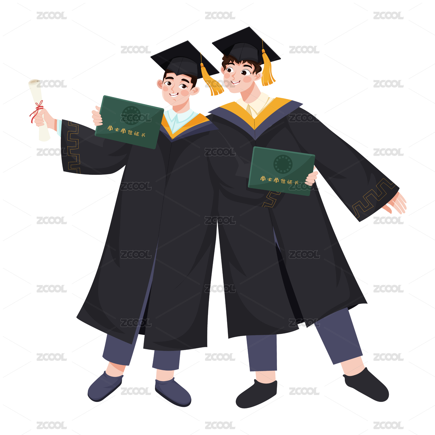 毕业季学士服人物卡通插画