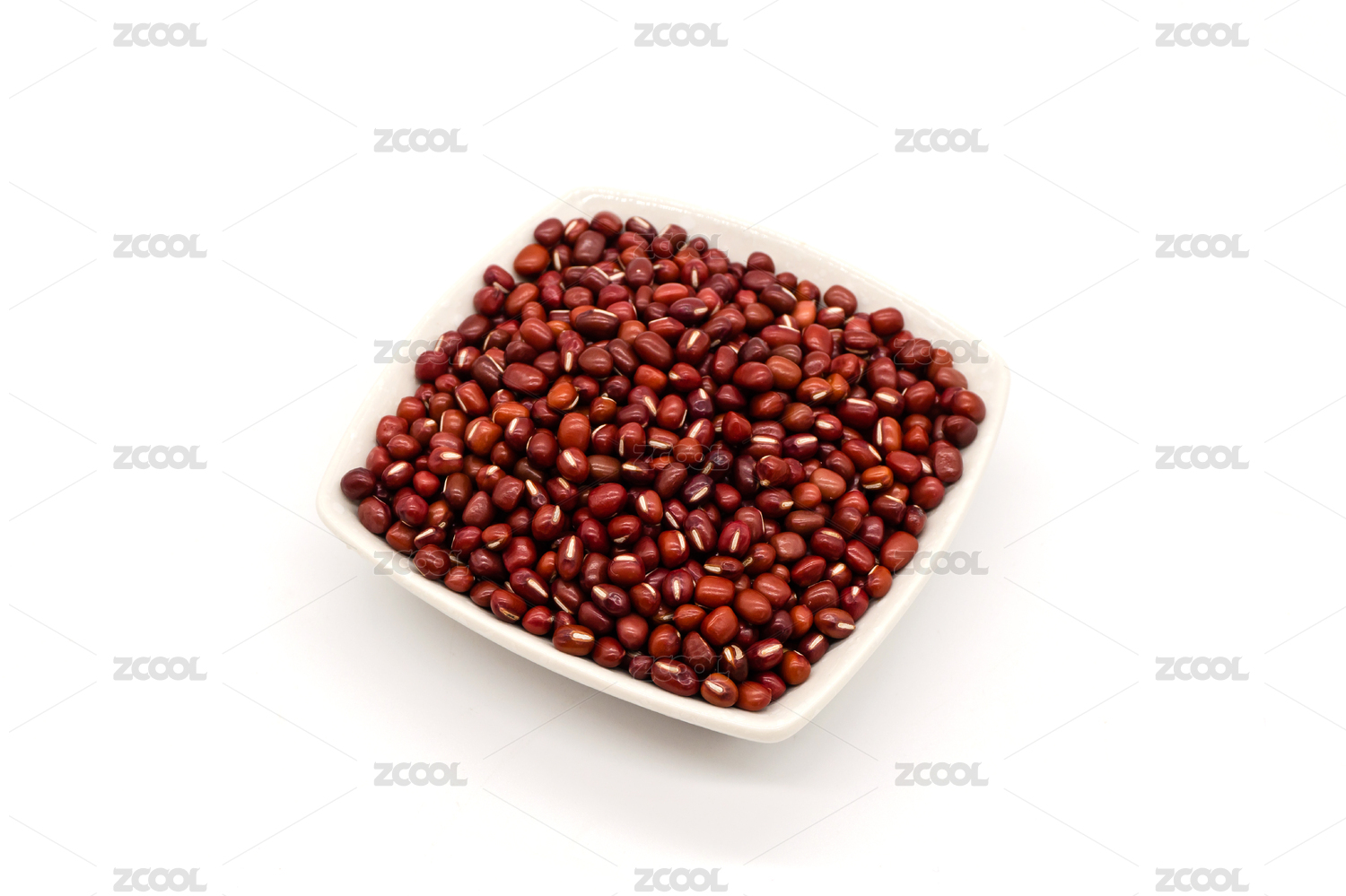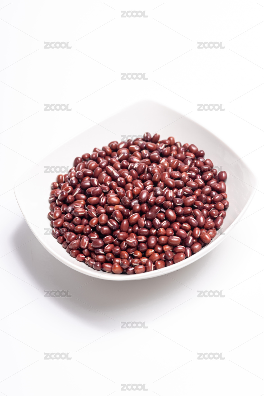 红豆装在大白盘里放在白底上