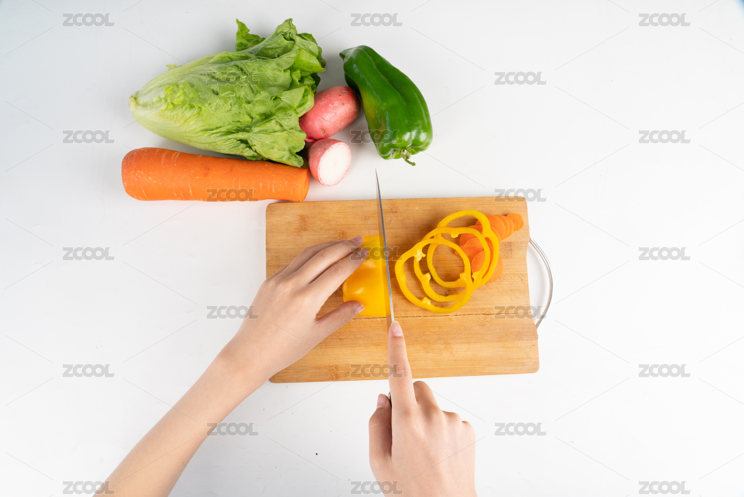 做饭,切菜,切菜板,切配,菜刀,蔬菜,做菜,厨具,彩椒,茴子白