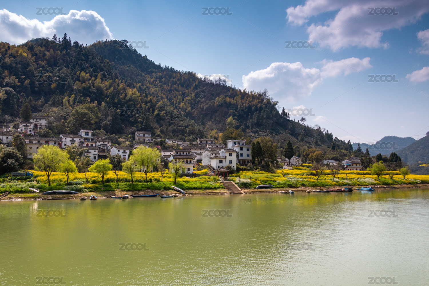 徽州,歙县,景点,新安江,春天,春季,春色,天空,蓝天,晴天