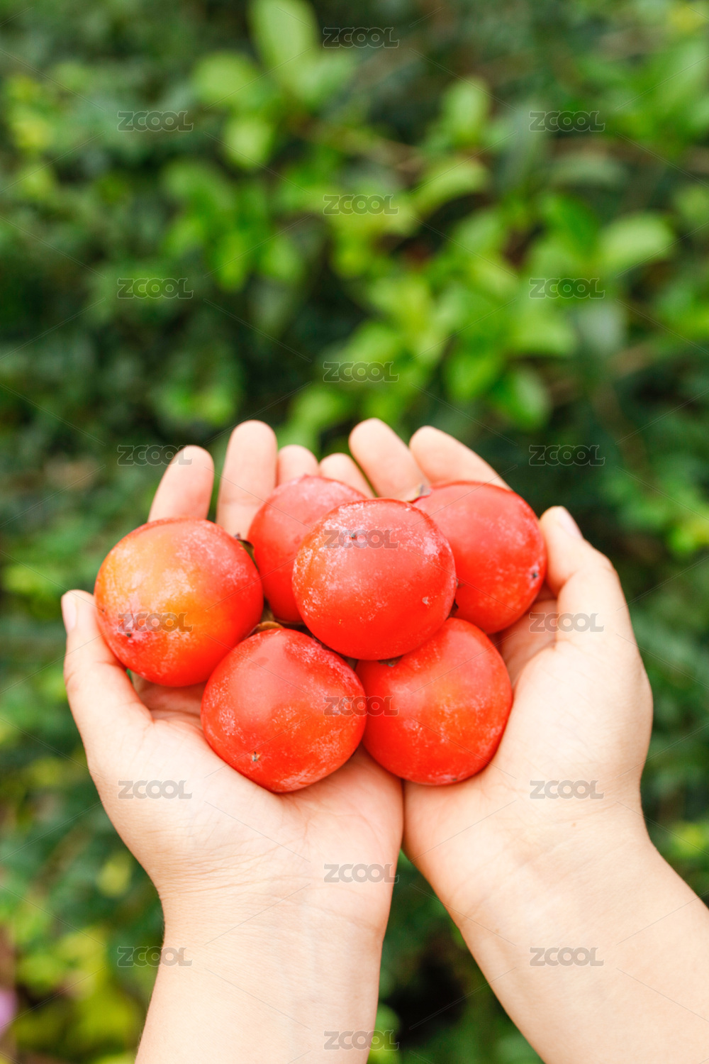 手里拿着蜜柿