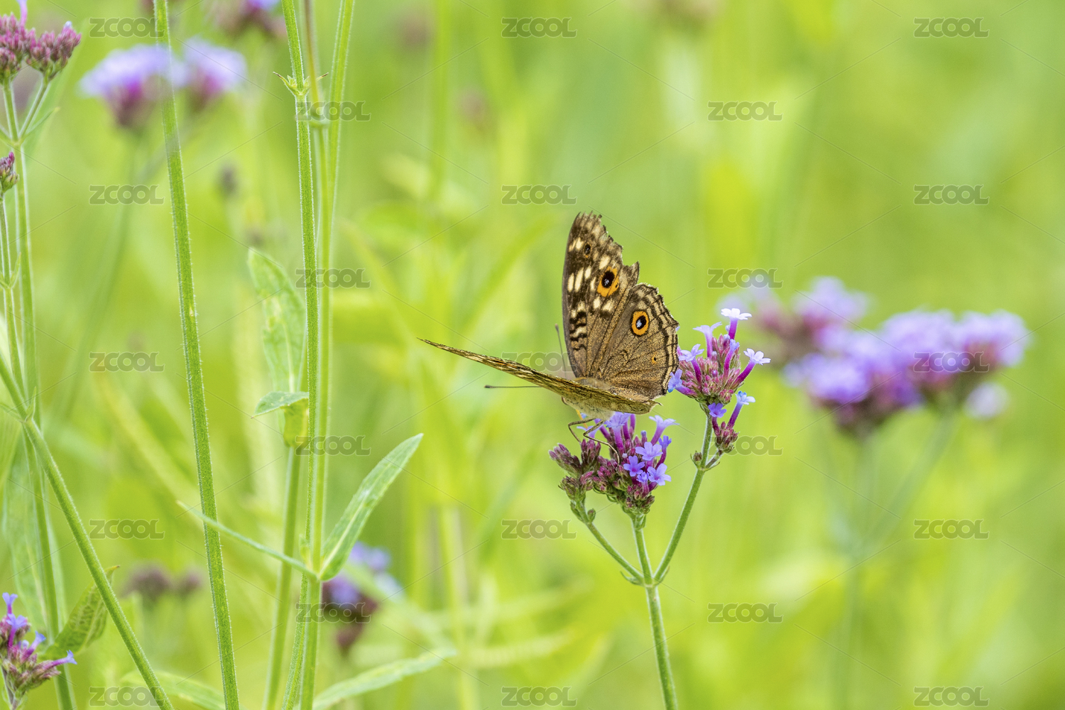 一只美眼蛱蝶穿梭于花丛中吸蜜并帮助授粉