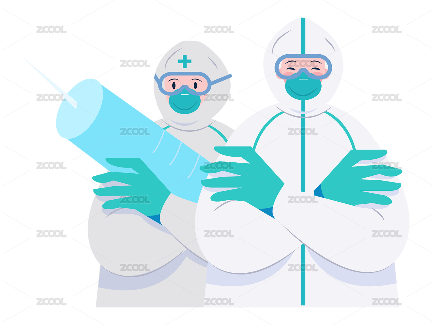 抗疫大白矢量扁平风医生组合