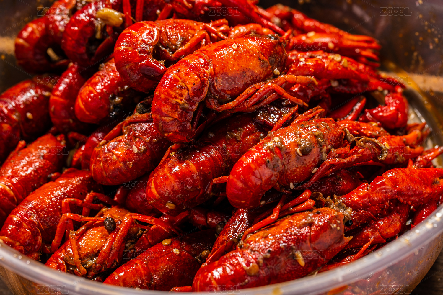 一盘美味诱人小龙虾的特写