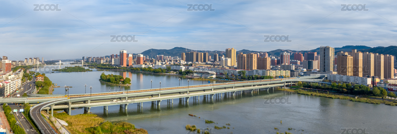 中国辽宁锦州小凌河云飞大桥航拍城市