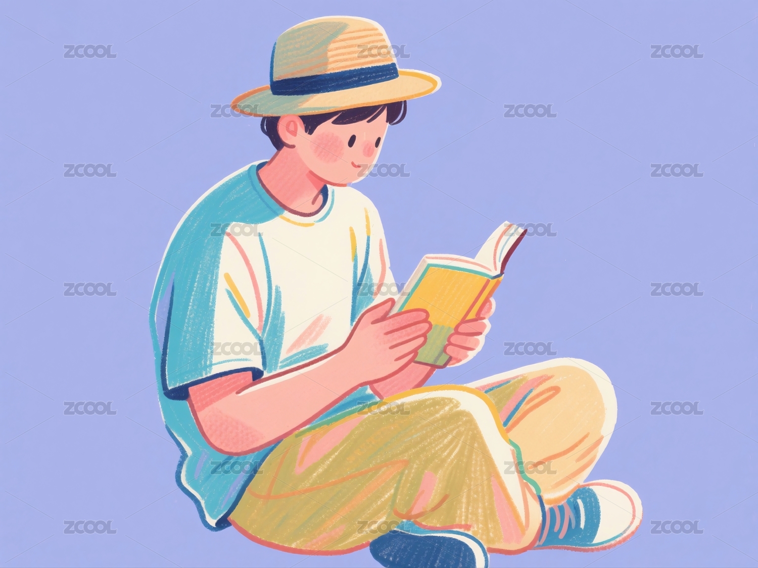 插画,人物,少年,黄衣服,橘色垫子,画夹,手绘,卡通,阳光,青春