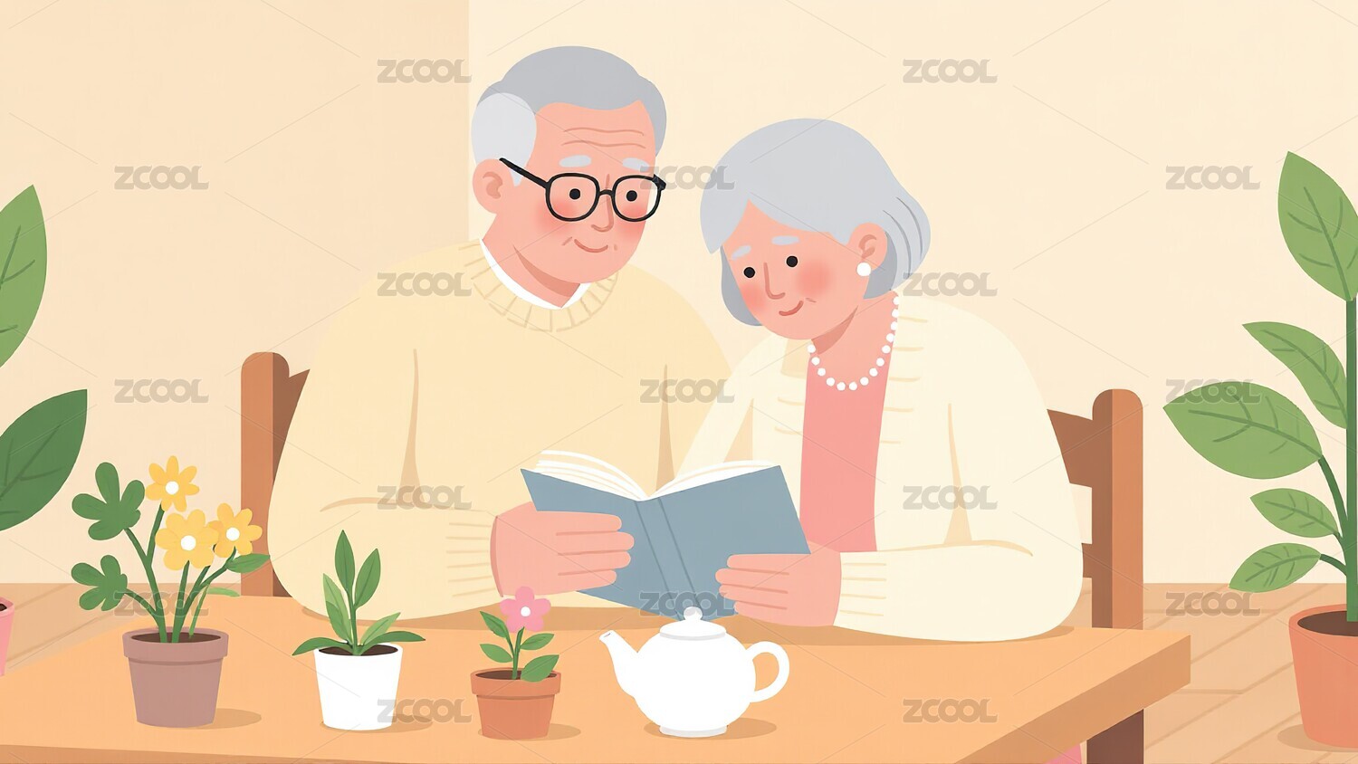 老年夫妇室内温馨阅读