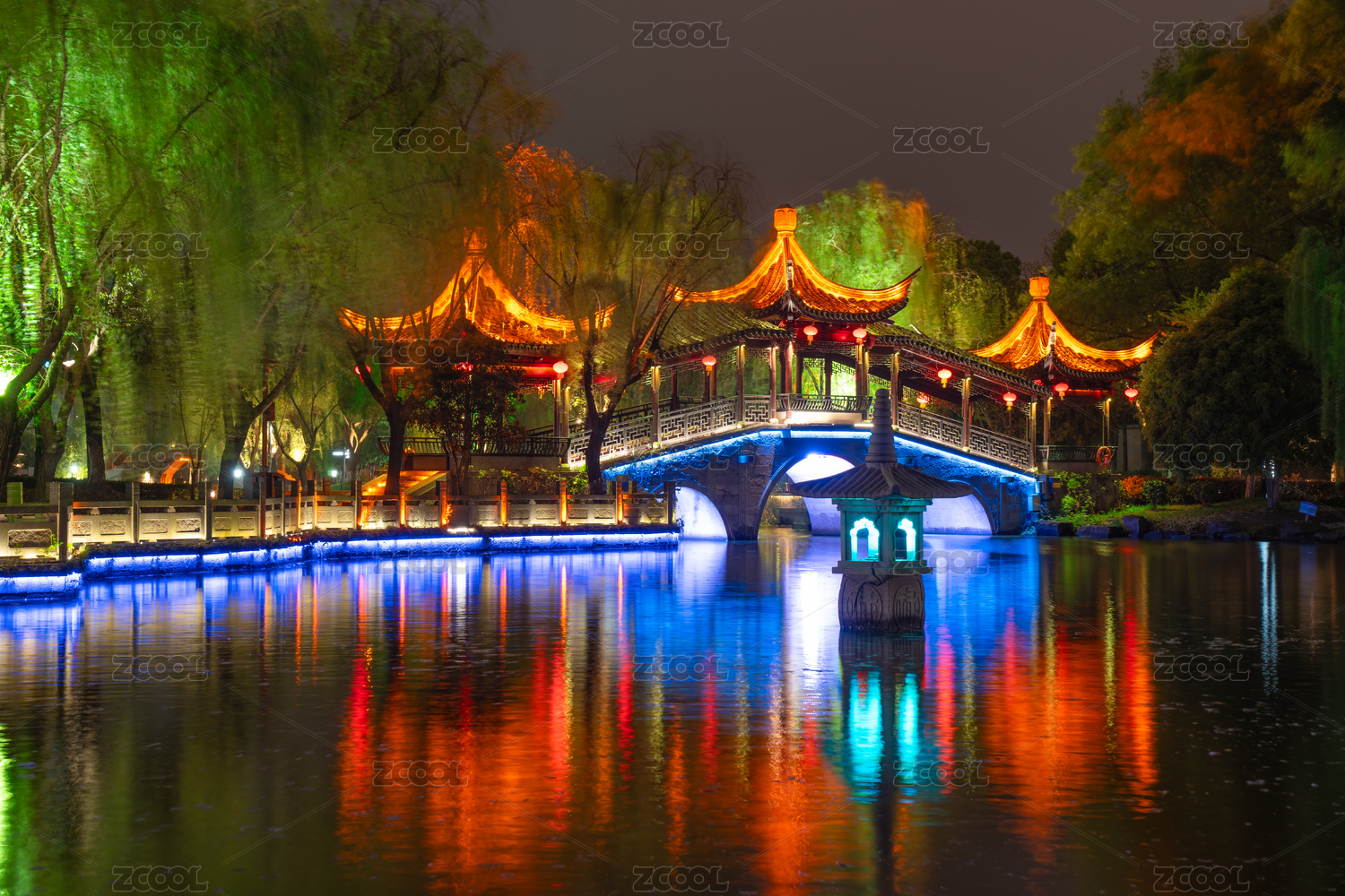 中国江苏扬州瘦西湖风景区凫庄夜景风光