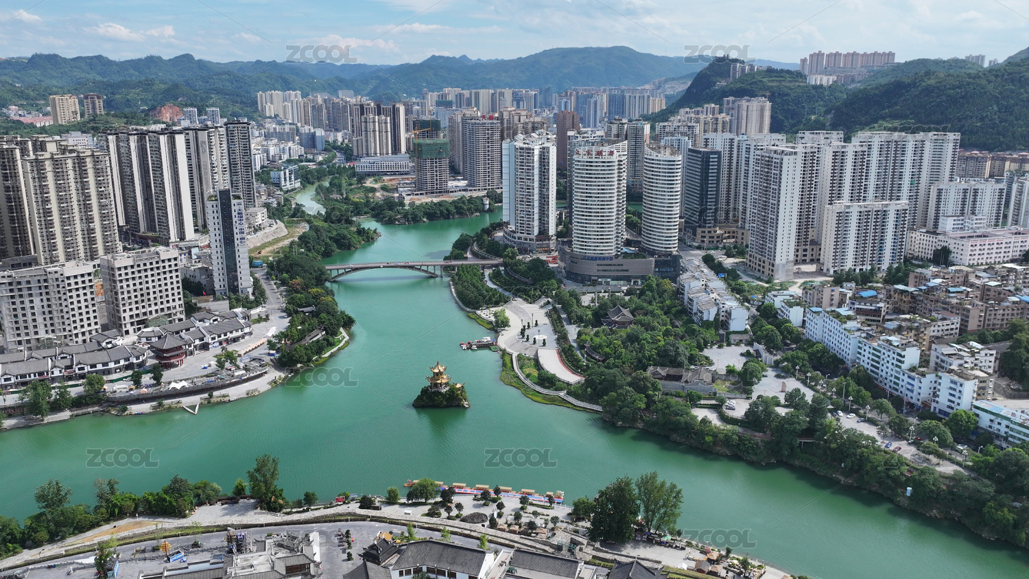贵州铜仁市中南门古城锦江城市高楼夜景航拍