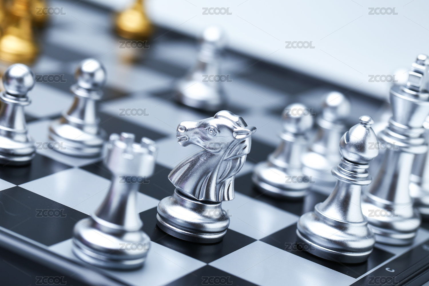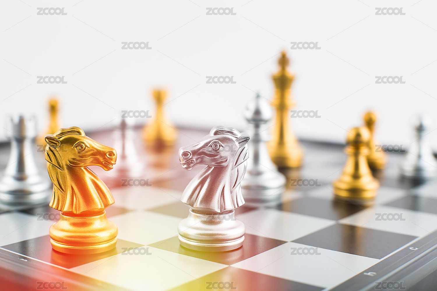 国际象棋棋子和棋盘,金融贸易策略博弈概念