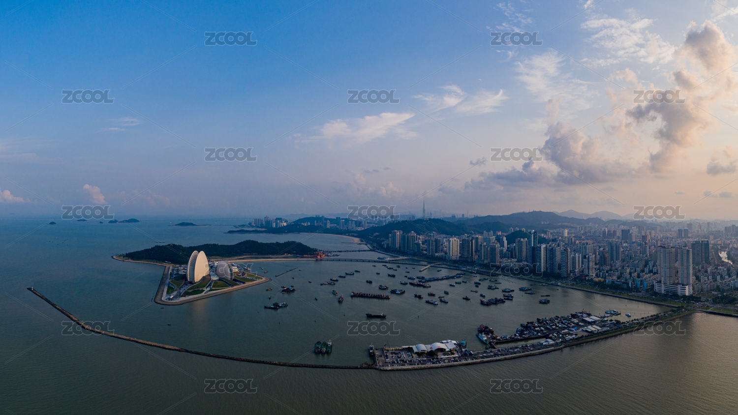 广东省珠海市香洲区日月贝大剧院晚霞航拍