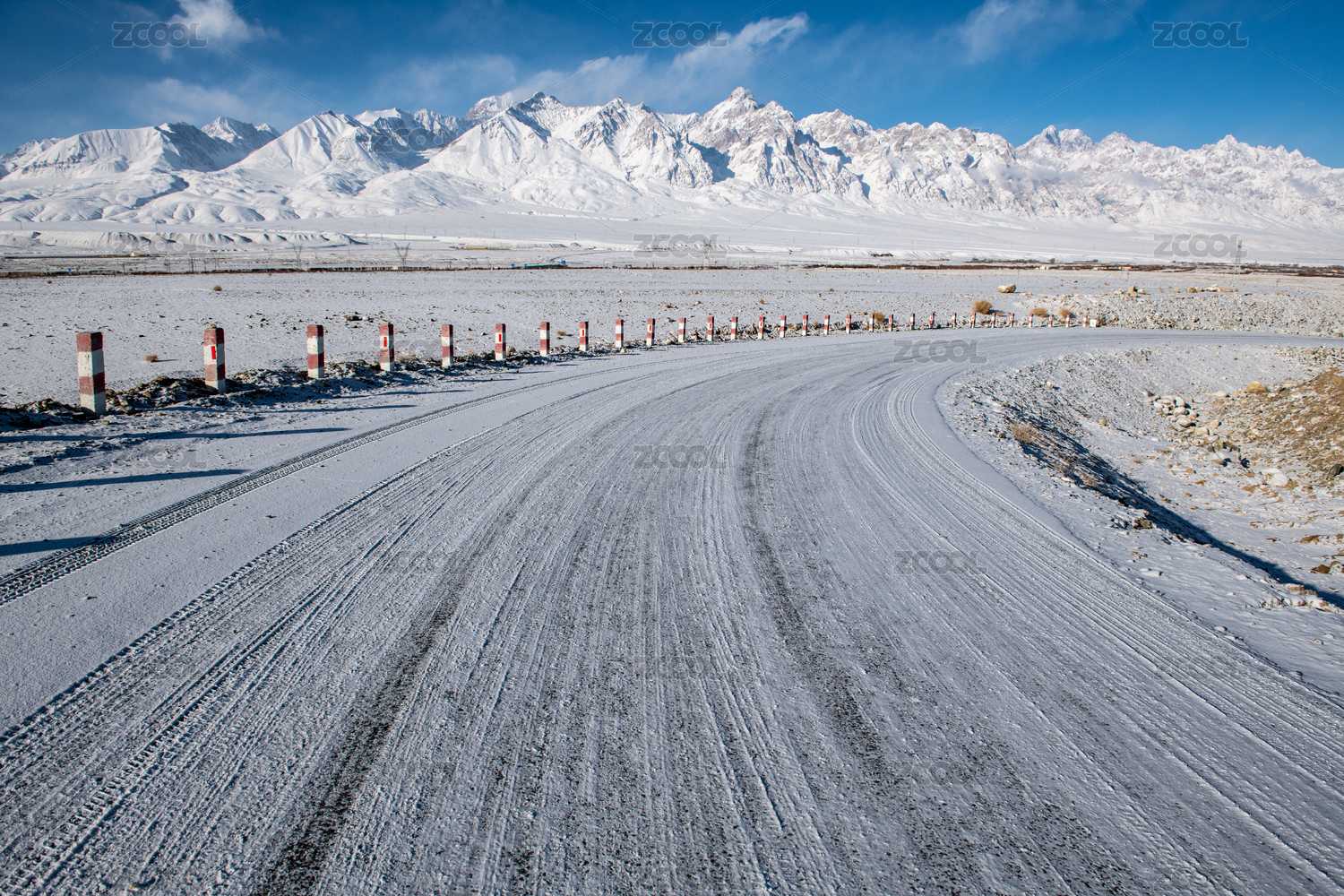 新疆,喀什地区,雪山,道路,汽车广告背景图,山,山脉,蓝天,天空,晴朗