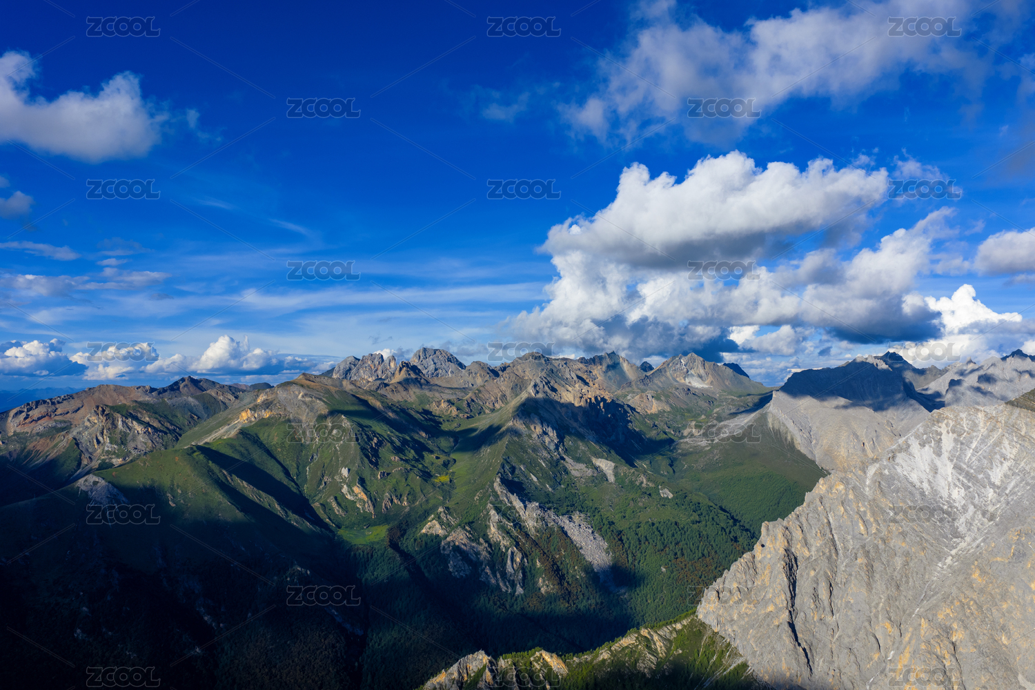 中国四川甘孜稻城亚丁群山风光 岩石裸露