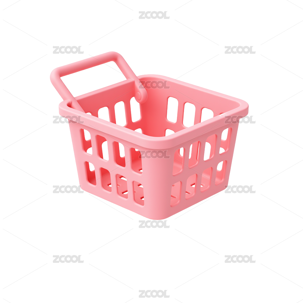 卡通风格的购物篮3D渲染图