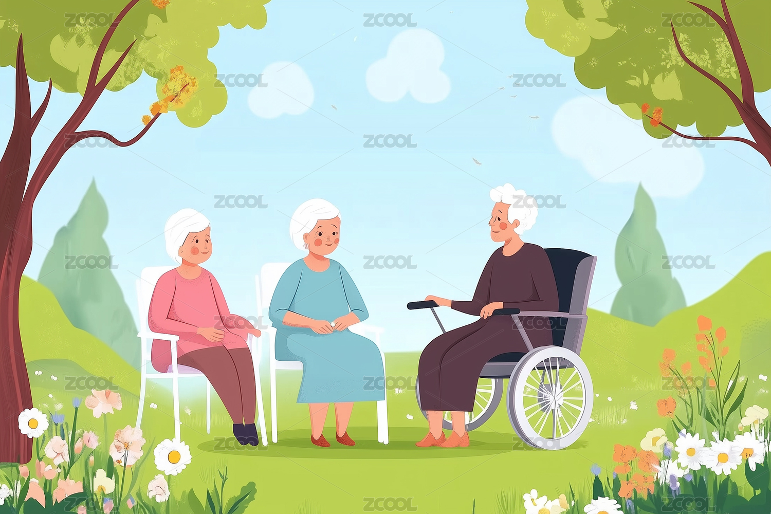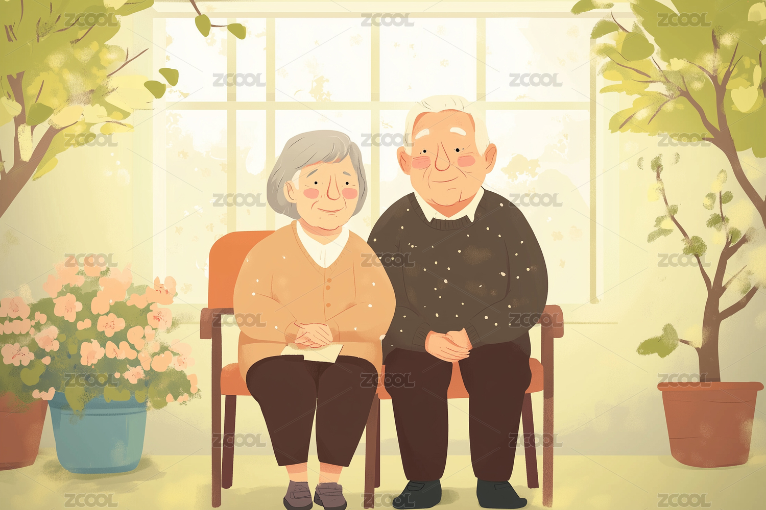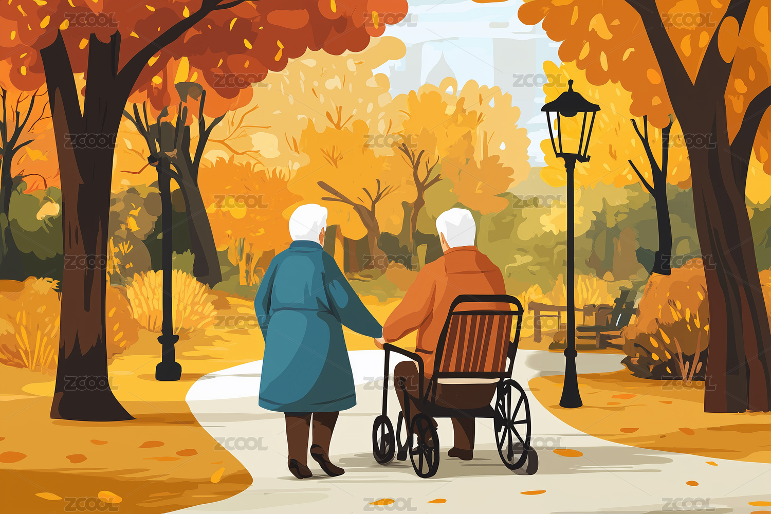 AIGC202406,老人,重阳节,陪伴,伴侣,爱人,家人,画