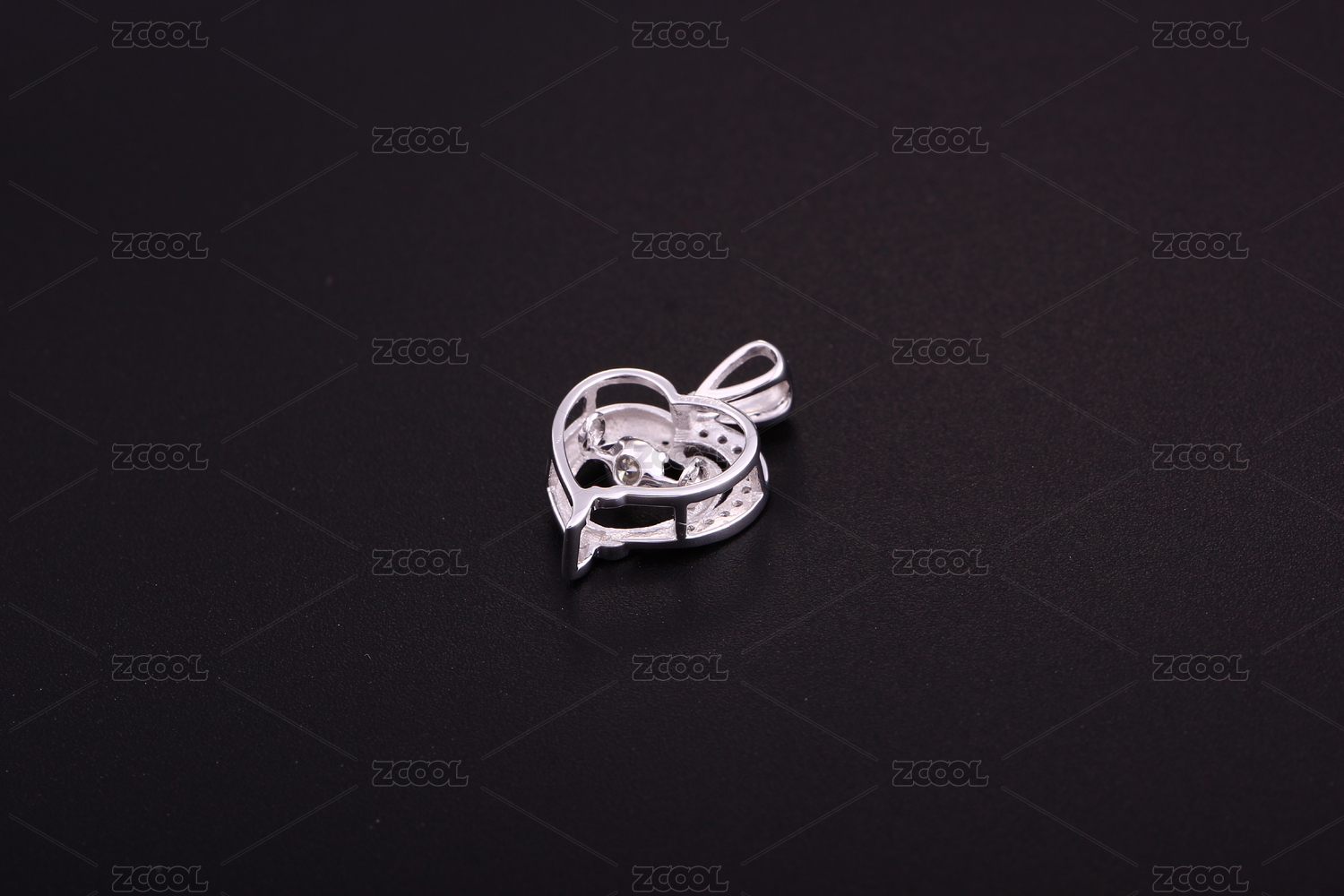 18K金钻石戒指吊坠放在深色的背景上