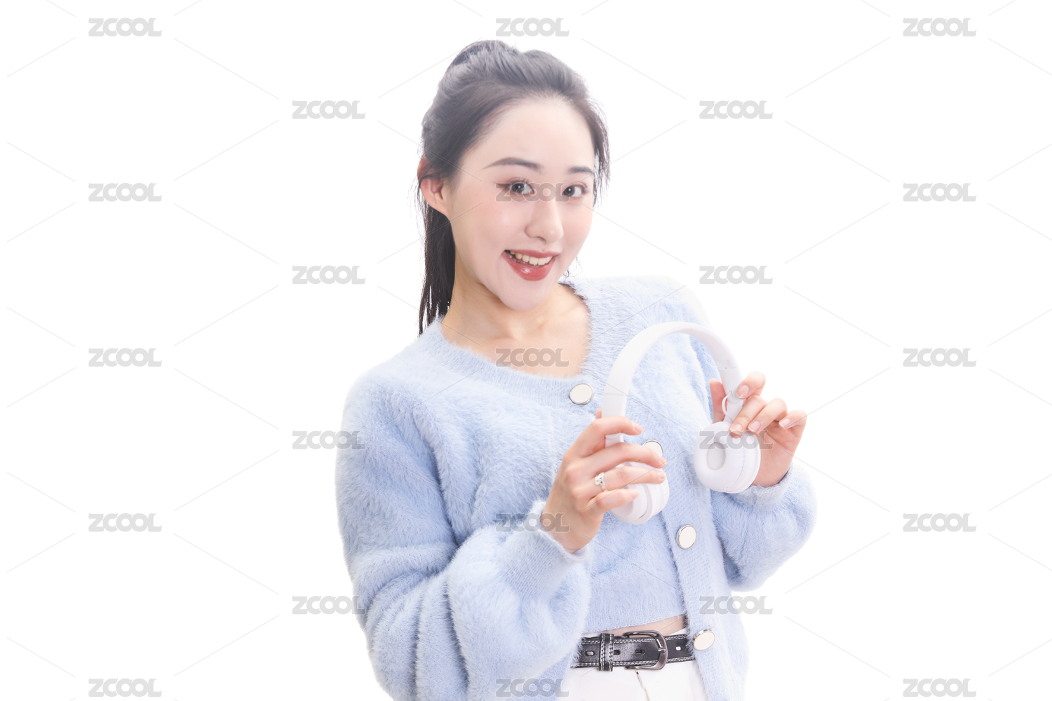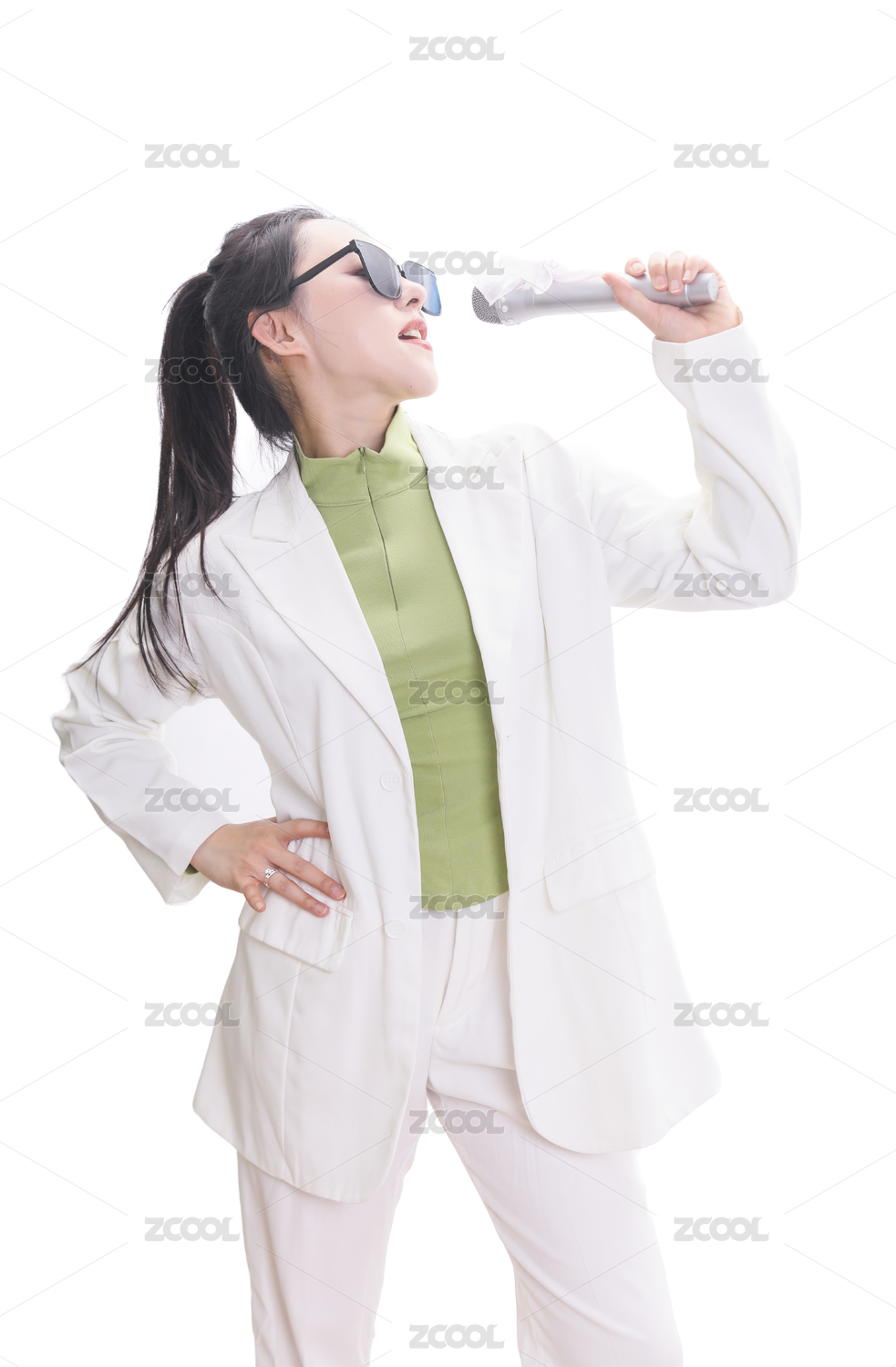 肖像,美女,白色背景,女人,女孩,麦克风,音乐,歌唱,蓝色衬衣,衬衫