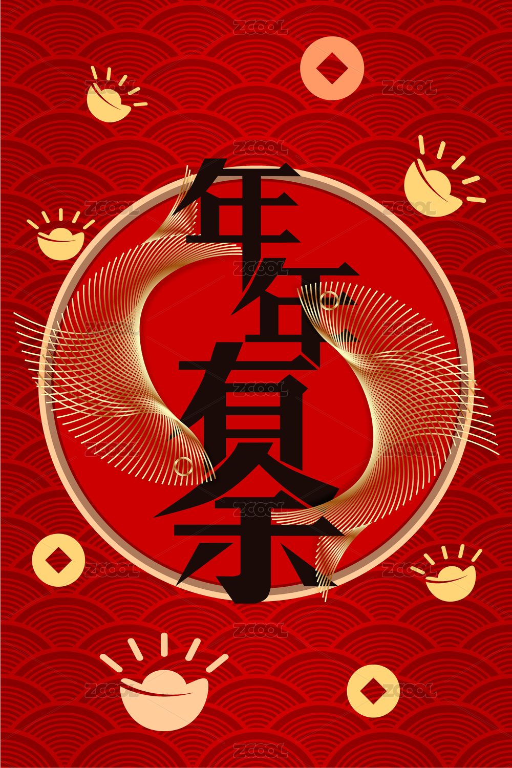 年年有余,年年有鱼,双鱼,插画,喜庆,春节,鱼,金色,底纹,祥纹