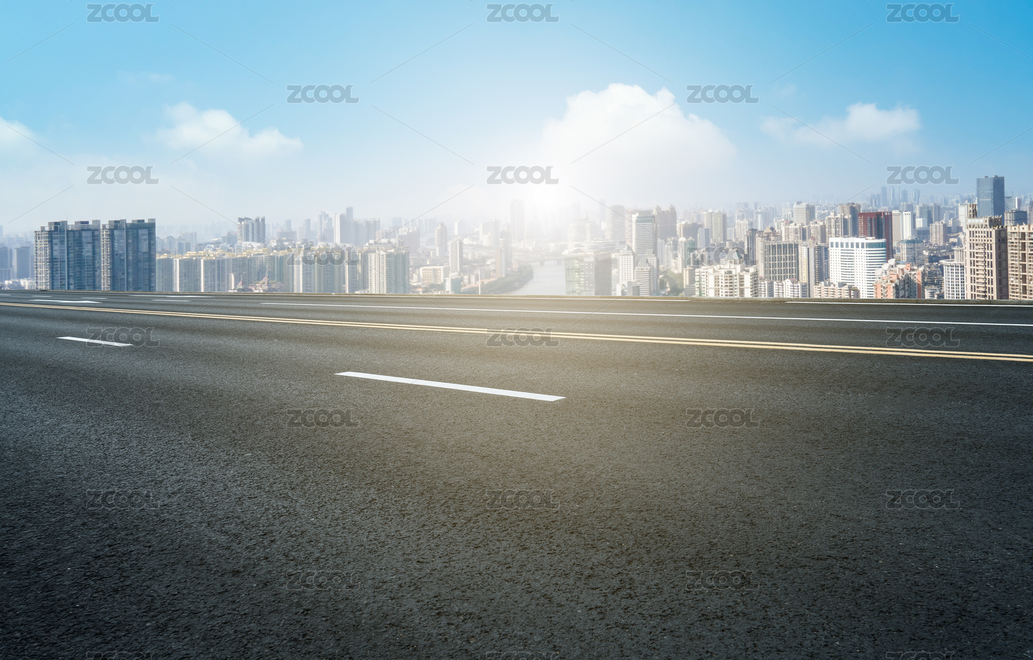 空旷无人、笔直向前通往现代都市的沥青公路。