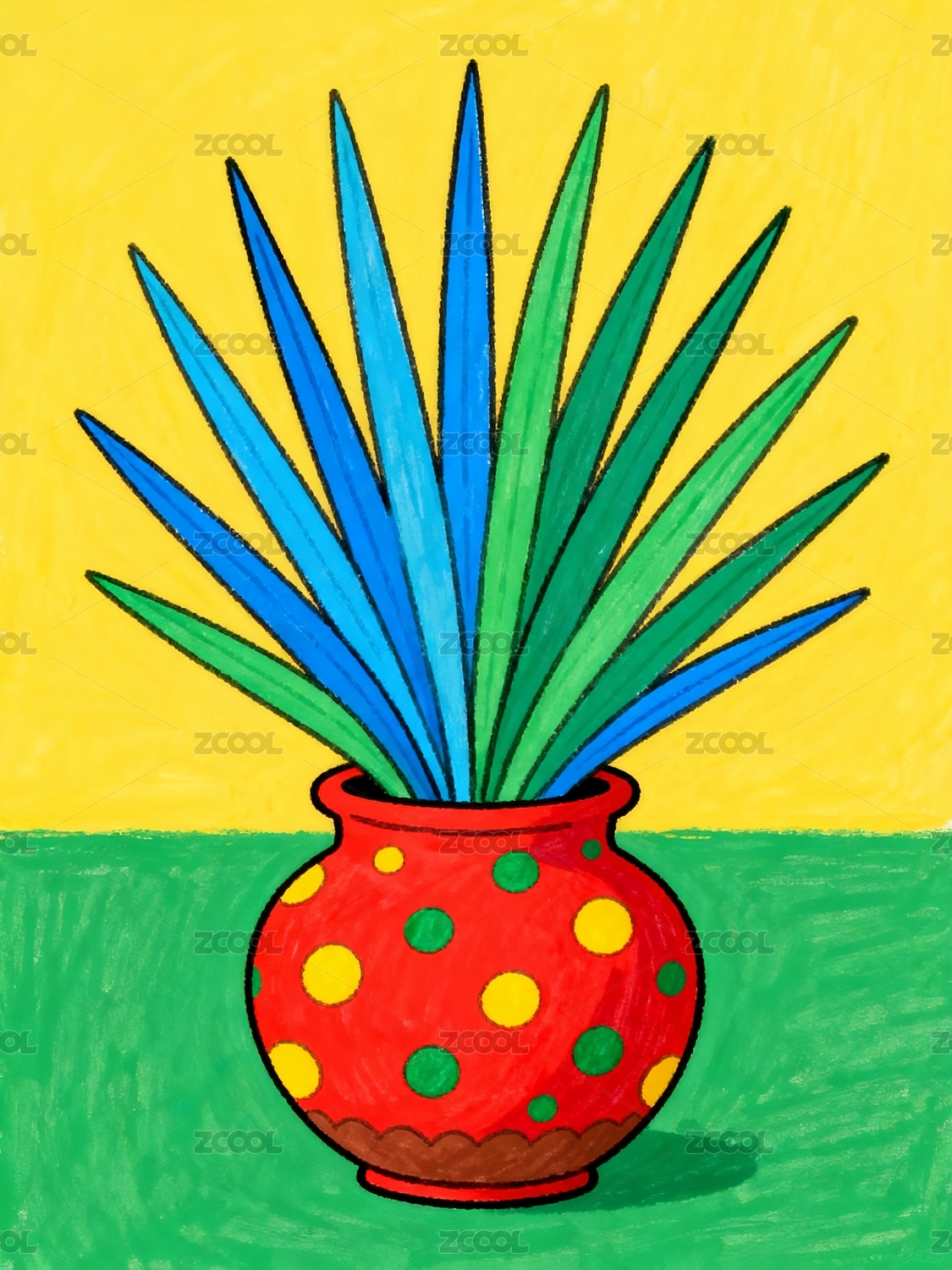 原创插画线圈画手绘插画现代装饰简约淡雅黄色蓝色花插创意画背景素材花瓶
