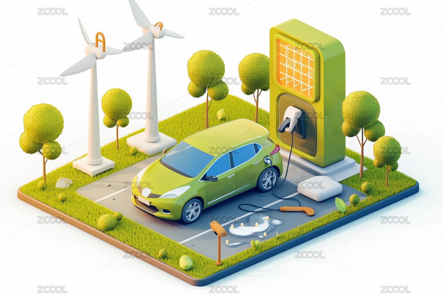 3D新能源汽车充电场景绿色环保插画