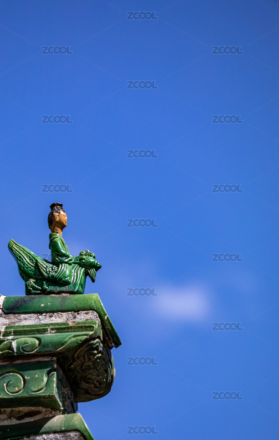 蓝天白云下的北京天坛公园古建筑仙人走兽