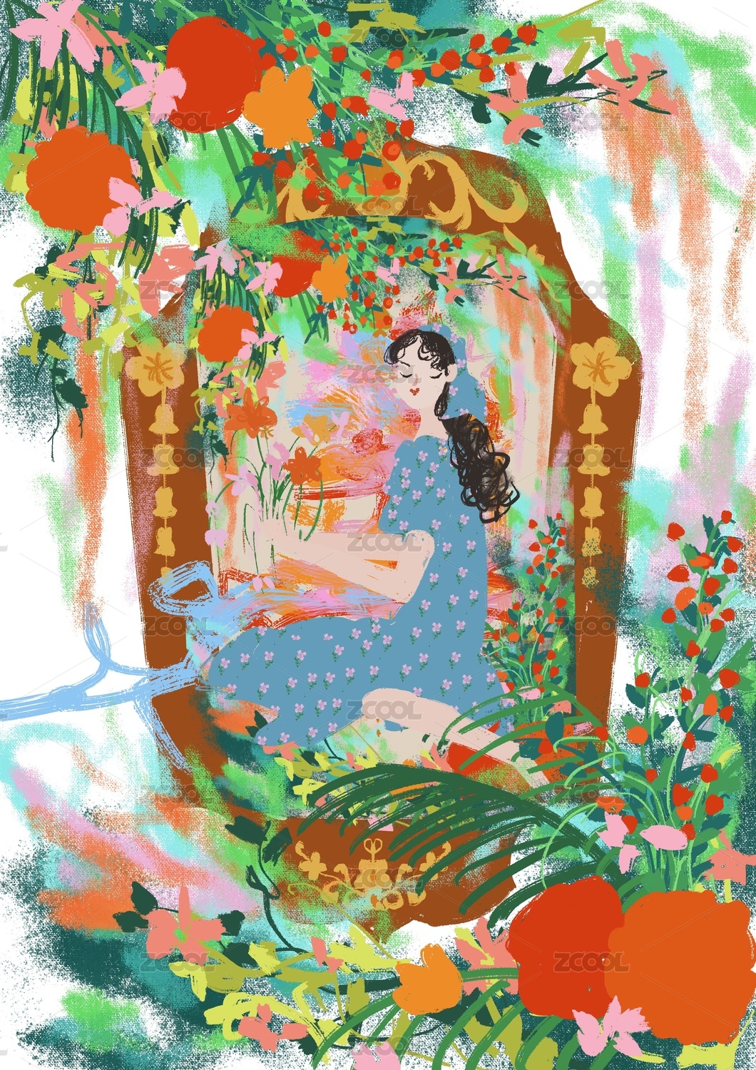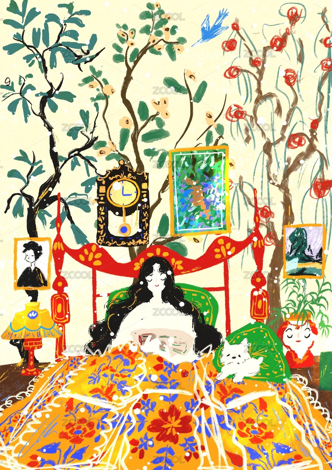 在洁白的冬日一起看静谧的雪景-治愈插画