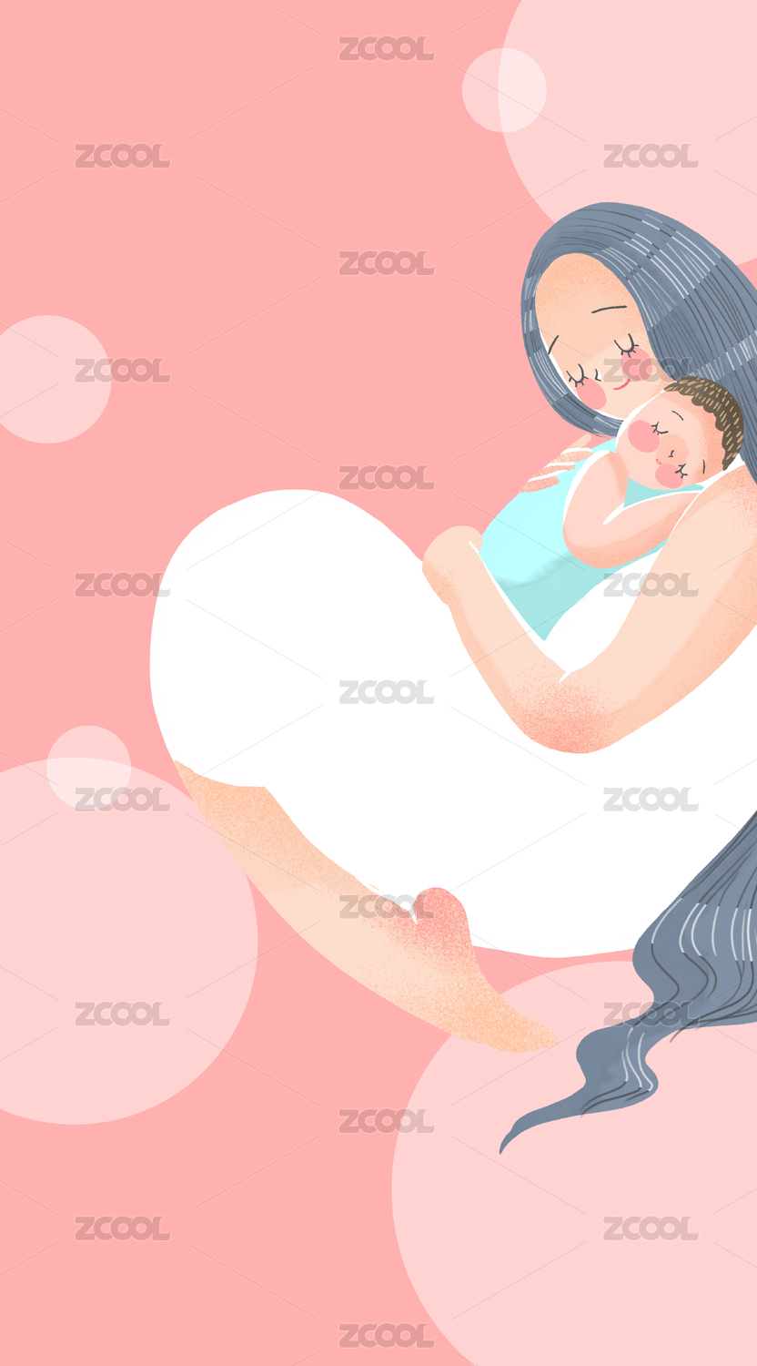 母亲节妈妈抱着婴儿萌宝插画矢量图