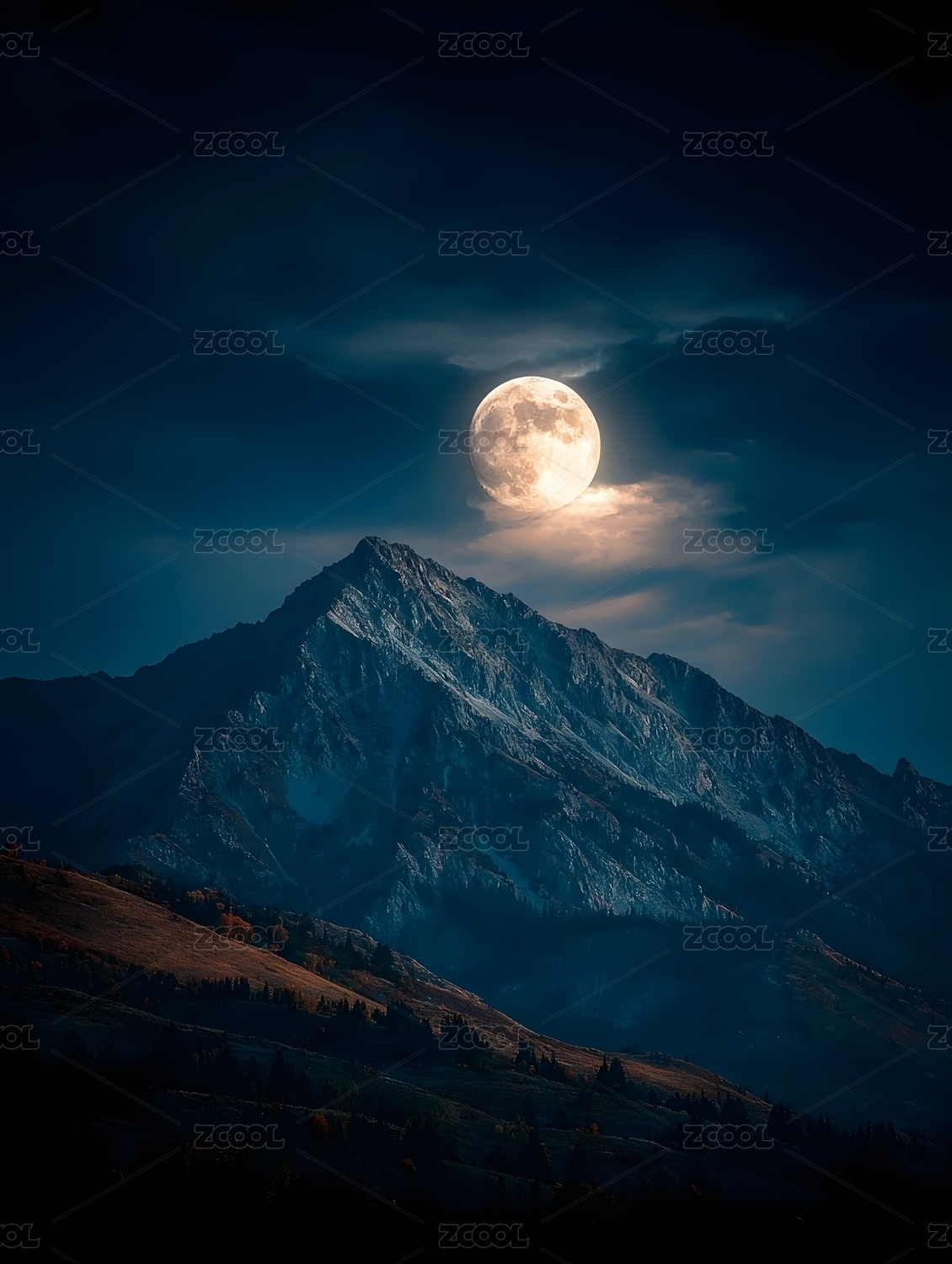 中国新疆克拉玛依独山子区天山山升起的月亮