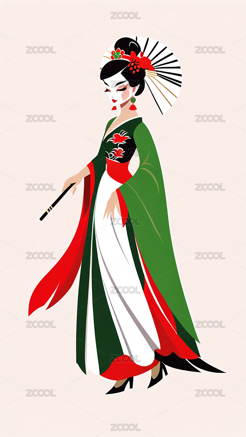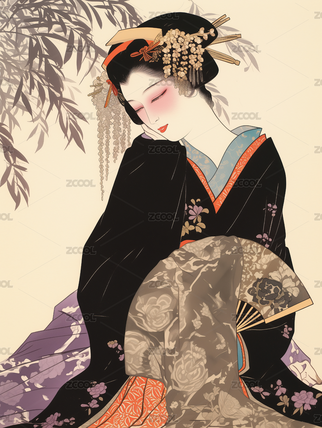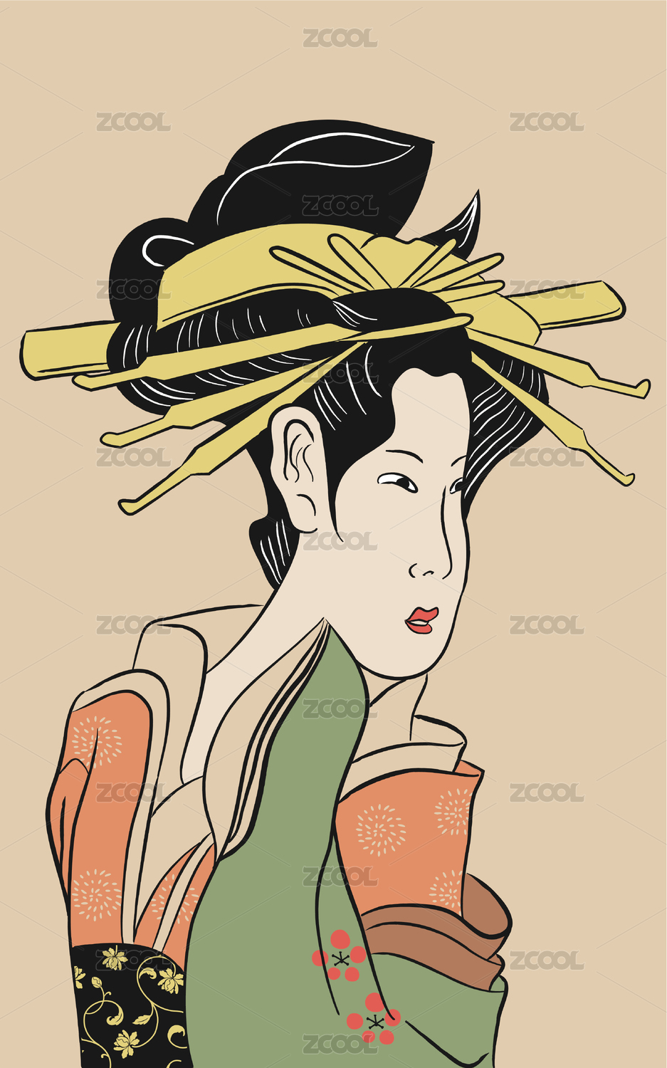插画,日本,艺妓,花魁,艺伎,美女,复古,和服,服饰,人物
