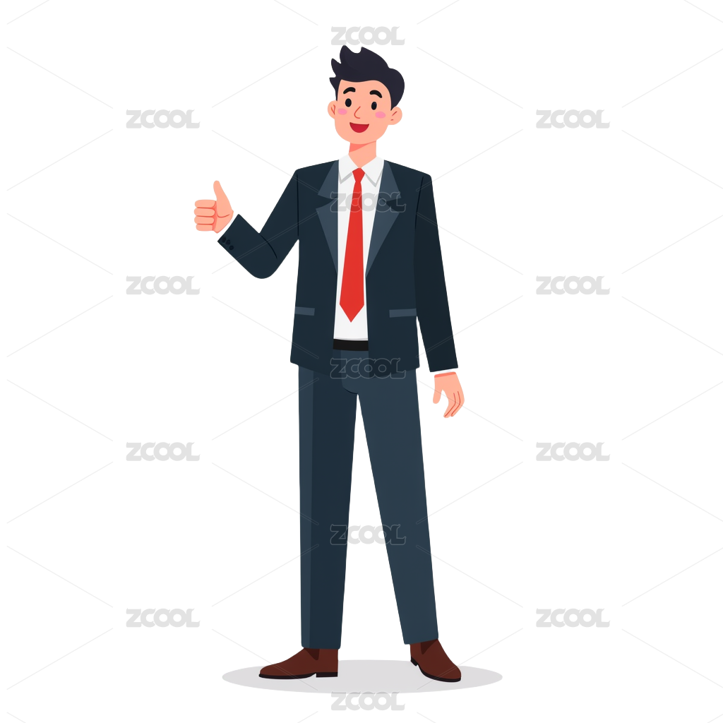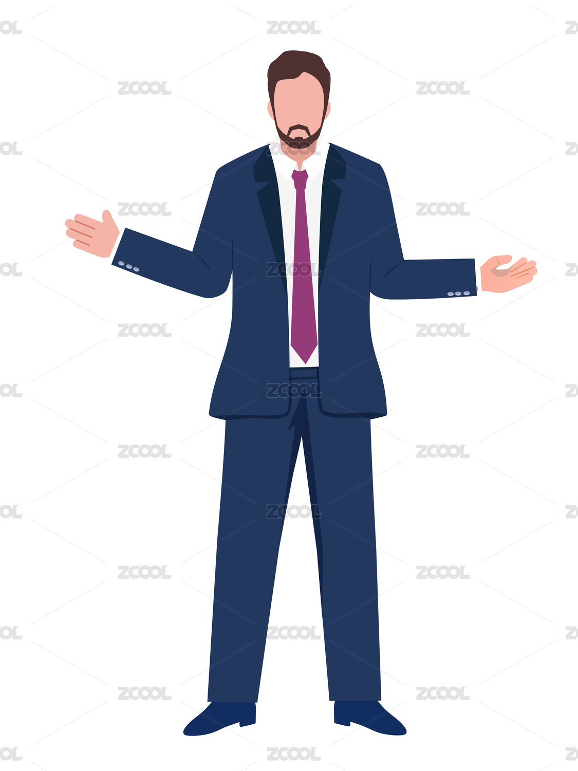 一位穿着深蓝色西服系着领带的职场男人 手绘插画