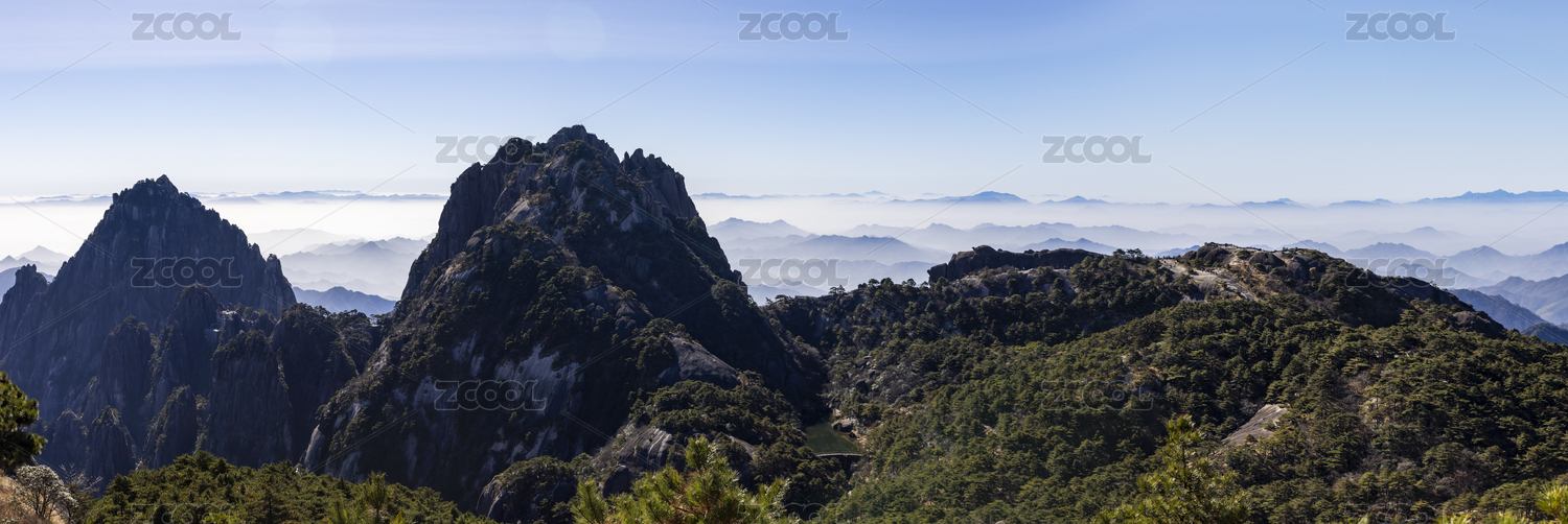 中国安徽黄山冬季晴天早上的猴子观海景点