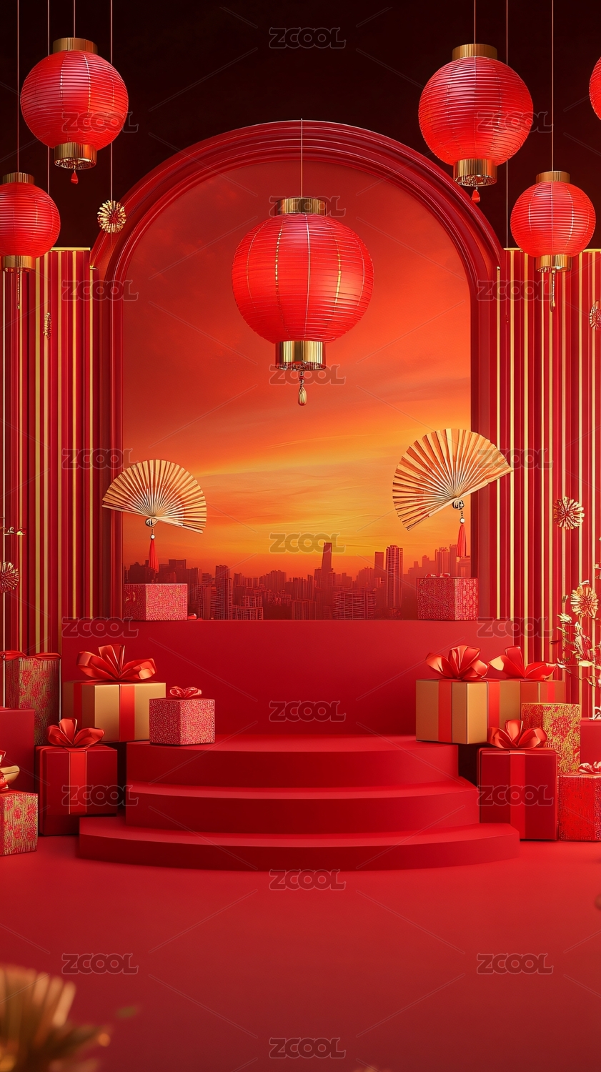 中国风新年春节产品展台背景