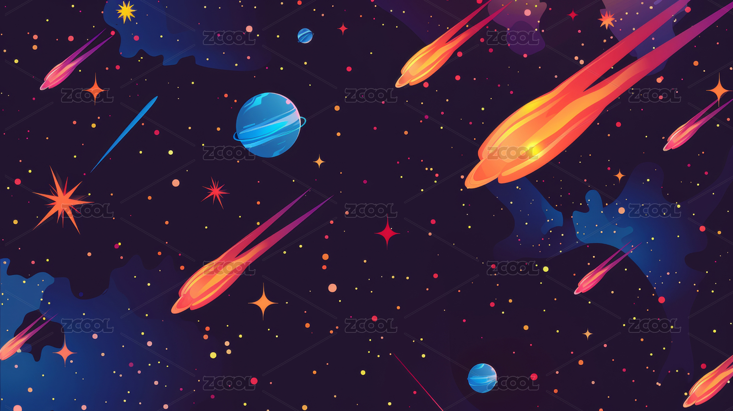 星空中的流星和星球图案,宇宙创意插画背景