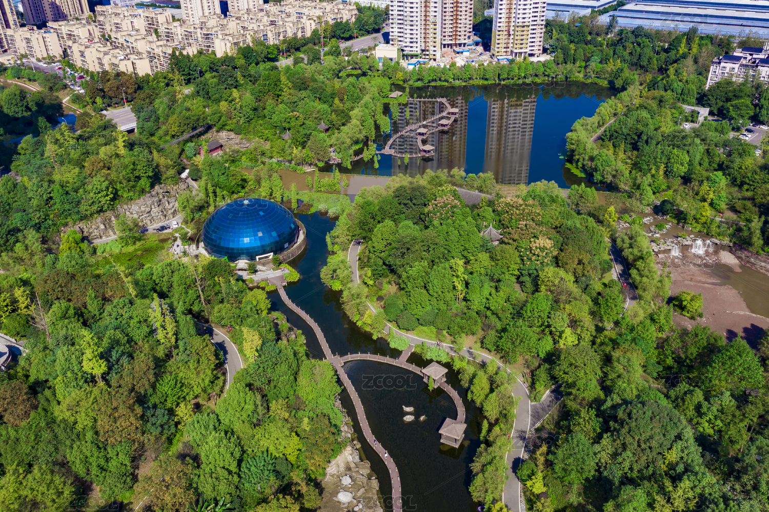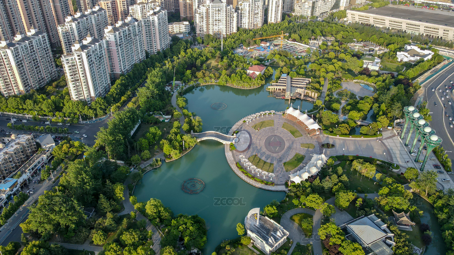 航拍城市公园园林风景