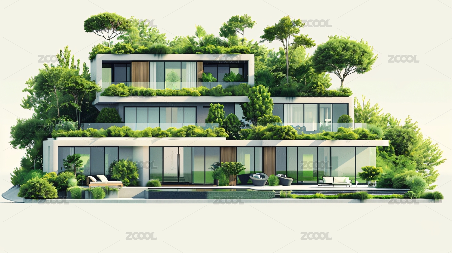 建筑,别墅,房子,平房,森林,树林,树木,绿色,手办,3D